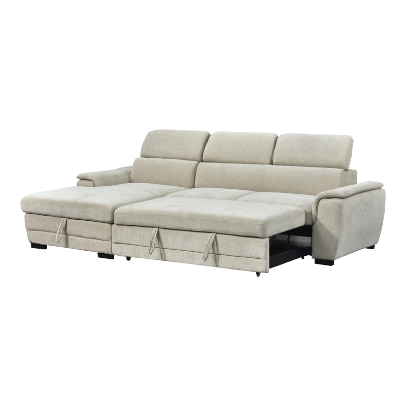 Γωνιακός καναπές-κρεβάτι δεξία γωνία Dreamora με αποθηκευτικό ύφασμα μπεζ 270x167x82εκ