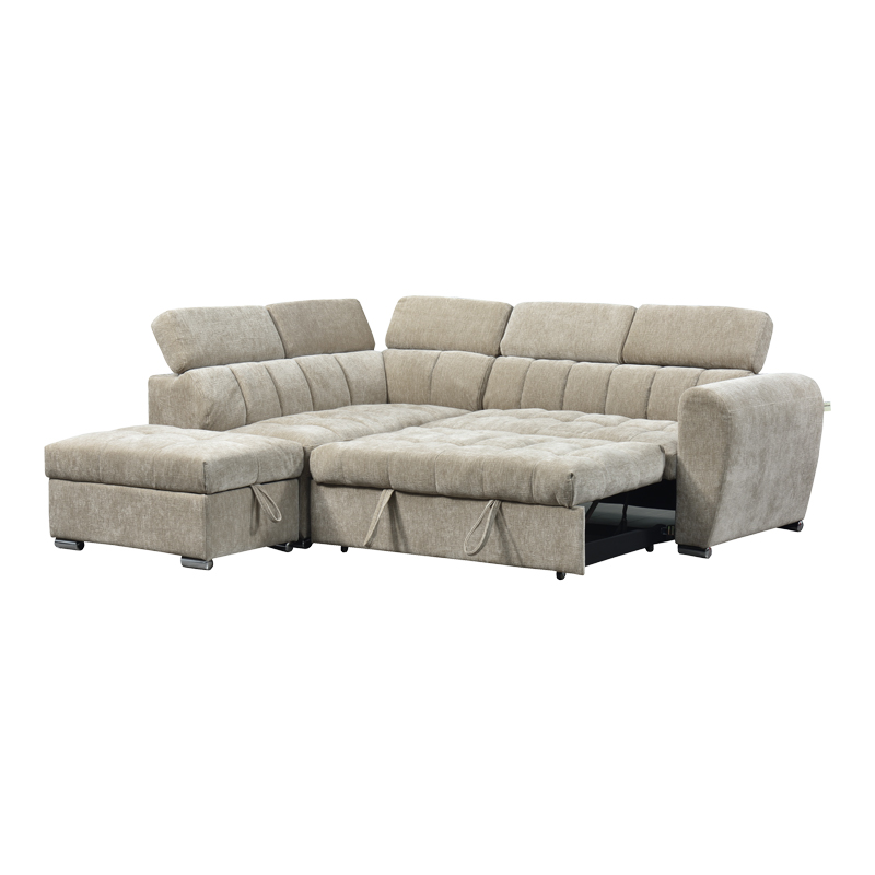 Γωνιακός καναπές-κρεβάτι δεξιά γωνία Nuvora με αποθηκευτικό χώρο μπεζ ύφασμα 244x225x79εκ