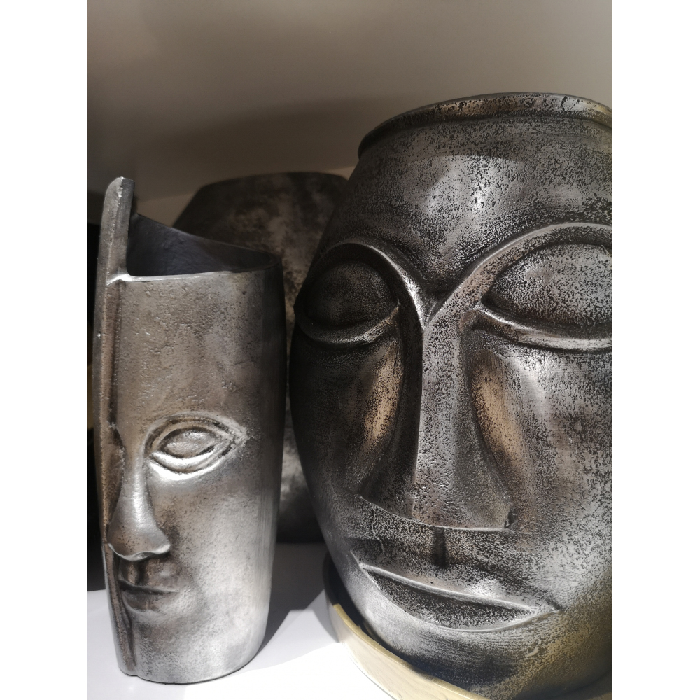 Το βάζο HARGA έχει καθαρή, γλυπτική φόρμα με έμφαση στη συμμετρία και την απλότητα των γραμμών. Κατασκευασμένο από αλουμίνιο με ασημί αντικέ φινίρισμα, παρουσιάζει μια ήρεμη μεταλλική υφή που δίνει βάθος χωρίς ένταση. Οι διαστάσεις του (23?23?27cm) το καθιστούν κατάλληλο για τοποθέτηση σε κονσόλες, τραπέζια ή επιλεγμένα σημεία του χώρου, λειτουργώντας ως διακριτικό αλλά ξεχωριστό διακοσμητικό στοιχείο. Εντάσσεται εύκολα σε σύγχρονους, minimal ή πιο αυστηρούς χώρους.