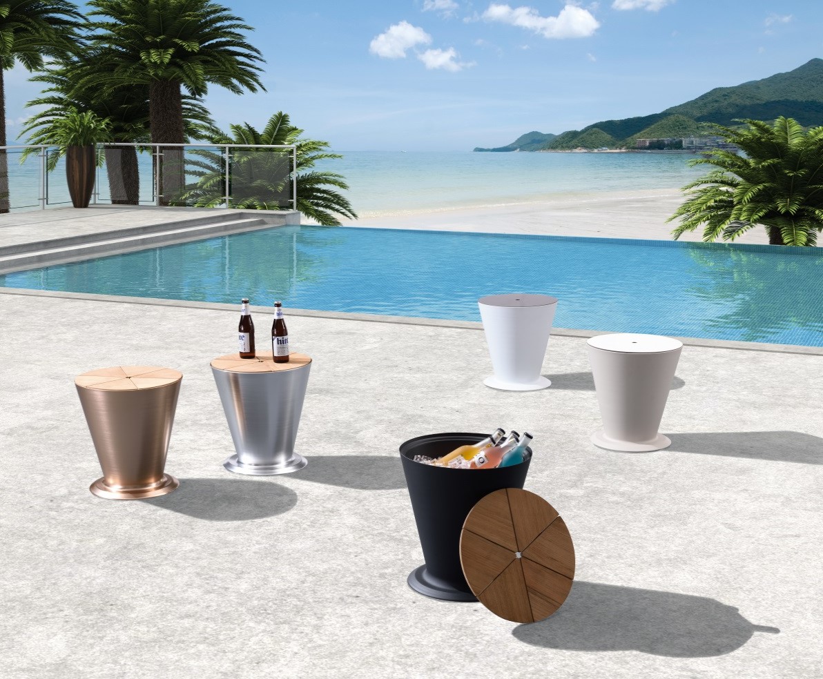 Icoo oslash;38xY.41,5cm τραπεζάκι με κάδο πάγου και επιφάνεια από ξύλο teak.