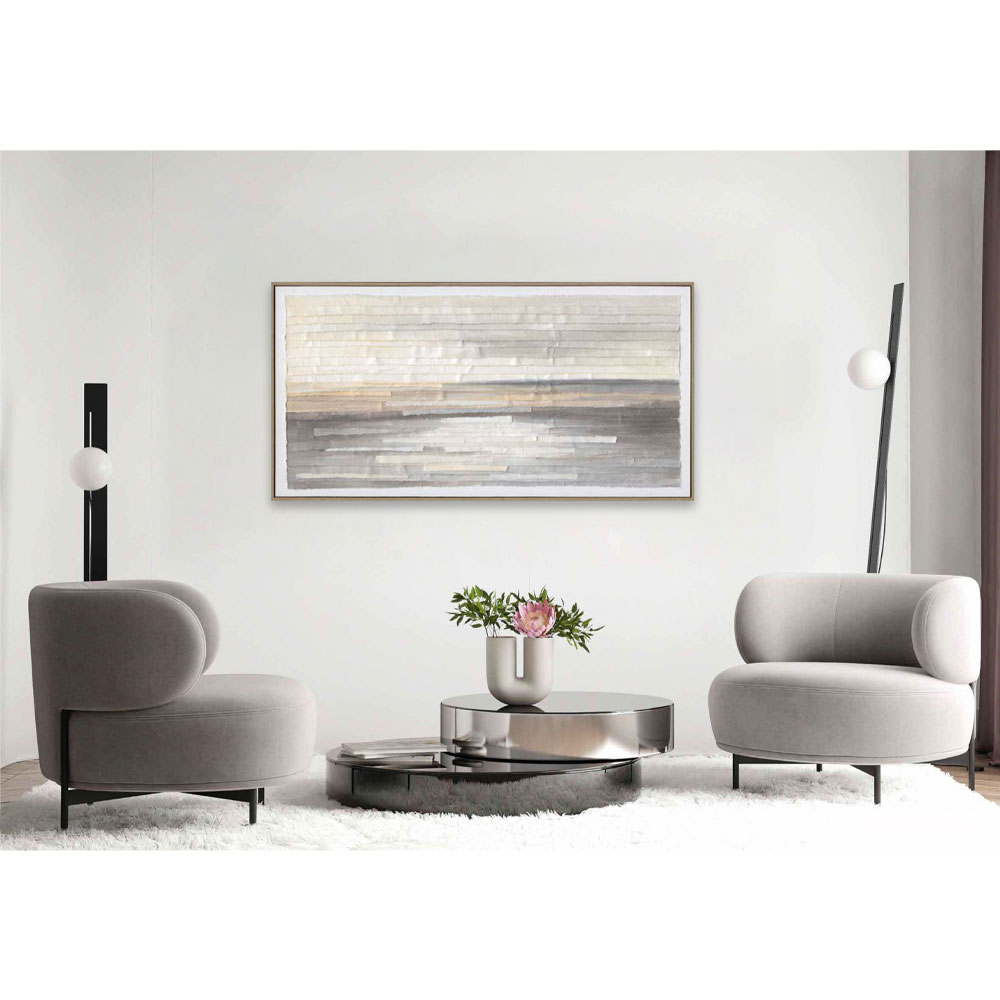 Ο πίνακας INOLA αποτυπώνει ένα απαλό τοπίο σε λευκές, μπεζ και γκρι αποχρώσεις, προσφέροντας μια ήρεμη και γαλήνια ατμόσφαιρα. Η υφή του καμβά αναδεικνύει την απλότητα του έργου, ενώ η ξύλινη κορνίζα του δίνει μια καθαρή και μοντέρνα παρουσία. Ιδανικός για υπνοδωμάτια, living rooms και χώρους χαλάρωσης. Ένα έργο που εκπέμπει minimal αισθητική και διακριτική πολυτέλεια.