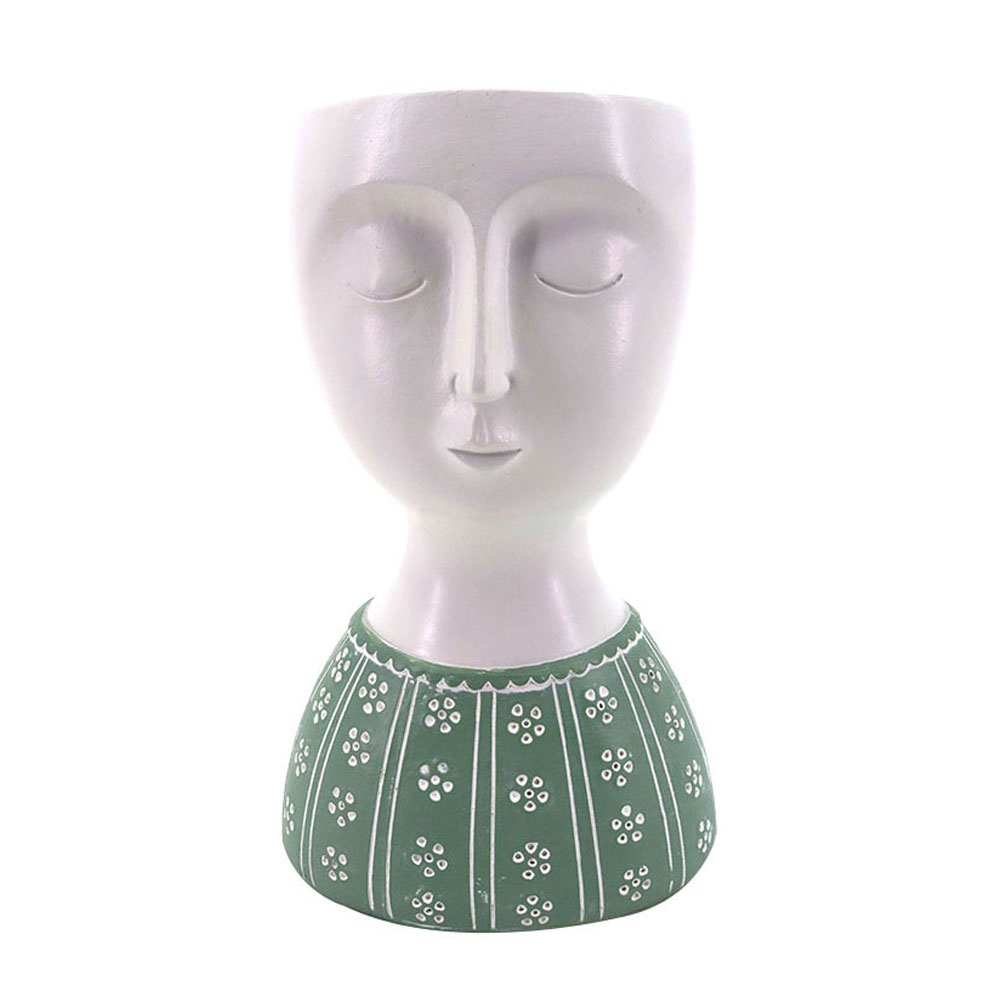 Το κασπώ IPAMO GREEN διαθέτει μια καλλιτεχνική κεφαλή με ανάγλυφη πράσινη βάση, δημιουργώντας ένα playful αλλά και κομψό διακοσμητικό αντικείμενο. Η polyresin κατασκευή προσφέρει εξαιρετική ανθεκτικότητα και λεπτομερή απόδοση σχημάτων. Οι λευκές και μέντα αποχρώσεις προσδίδουν φρεσκάδα, κάνοντάς το ιδανικό για μικρά φυτά ή διακοσμητικές συνθέσεις. Ιδανικό για γραφεία, ράφια, παιδικά δωμάτια ή modern eclectic χώρους.