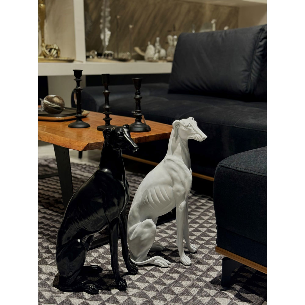 Το IBIZAN είναι ένα διακοσμητικό σκυλί με λεπτή, επιμήκη φόρμα και glossy μαύρο φινίρισμα. Η καθαρή γραμμή του προσθέτει μοντέρνα αισθητική και vertical ενδιαφέρον στον χώρο. Κατασκευασμένο από polyresin, προσφέρει ανθεκτικότητα και ανώτερη λεπτομέρεια. Ιδανικό για γραφεία, living rooms και luxury διακοσμητικά concepts. Ένα elegant αντικείμενο που συνδυάζει design και μινιμαλισμό.