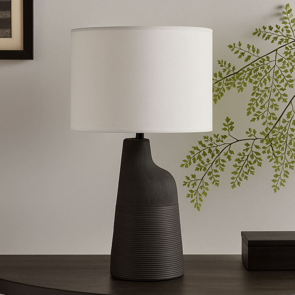 Το επιτραπέζιο φωτιστικό JEMMA σε μαύρη βάση με λευκό καπέλο δίνει πιο έντονο χαρακτήρα και μεγαλύτερο οπτικό “βάρος” στον χώρο. Το αποτέλεσμα είναι εκλεπτυσμένο και σύγχρονο, ταιριάζοντας τέλεια σε εισόδους, καθιστικά με minimal αισθητική και κομοδίνα που χρειάζονται ένα design-forward φωτιστικό.