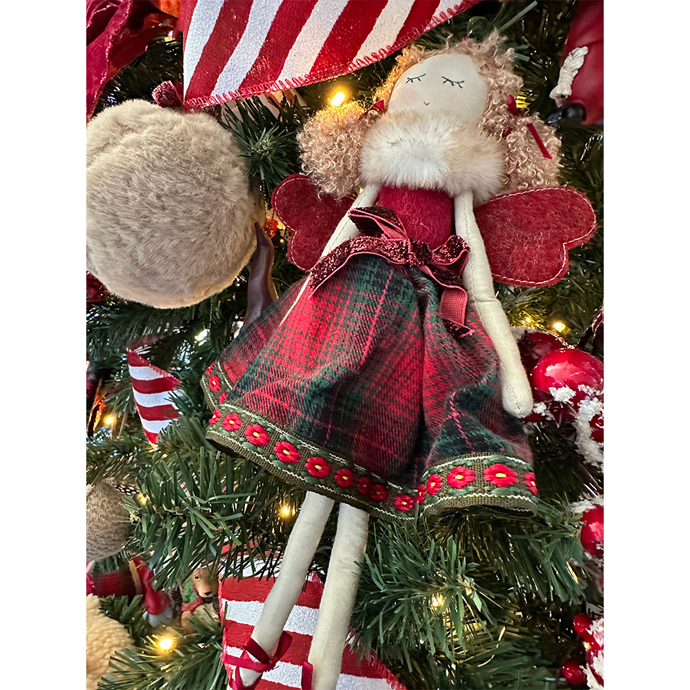 JOY ΧΡΙΣΤΟΥΓΕΝΝΙΑΤΙΚΟ ΣΤΟΛΙΔΙ ΚΟΡΙΤΣΙ 33cm ΥΦΑΣΜΑ ΚΟΚΚΙΝΟ ΠΡΑΣΙΝΟ ΜΠΕΖ