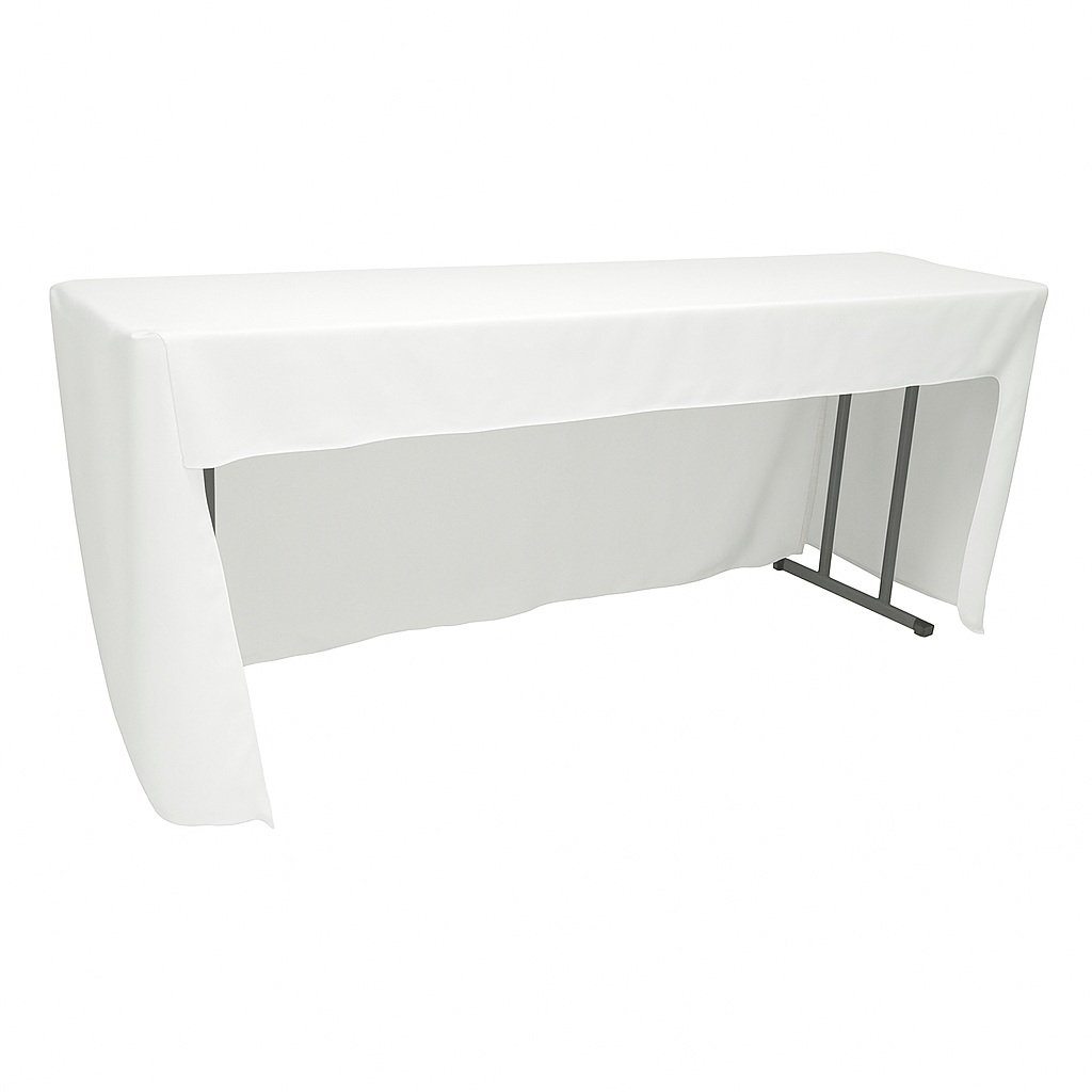 Κατασκευασμένη με προσοχή στη λεπτομέρεια, η θήκη καλύπτει τρεις πλευρές του τραπεζιού, αφήνοντας την εσωτερική πλευρά (εκείνη που κάθεται ο σύνεδρος-καθήμενος) ανοιχτή, εξασφαλίζοντας άνεση στα πόδια και ευκολία στη χρήση καθ’ όλη τη διάρκεια της εκδήλωσης.