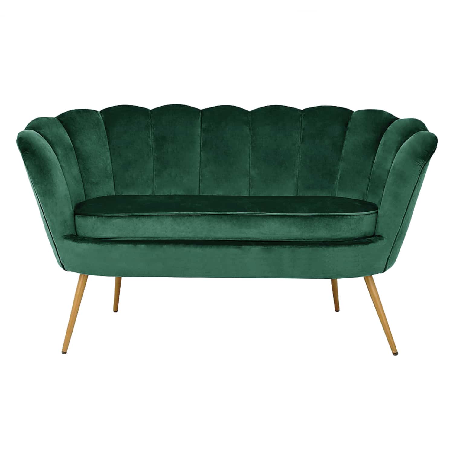 Καναπές διθέσιος COQUILLE από βελούδο σε κυπαρισσί απόχρωση με μεταλλικά πόδια σε χρυσή απόχρωση.
