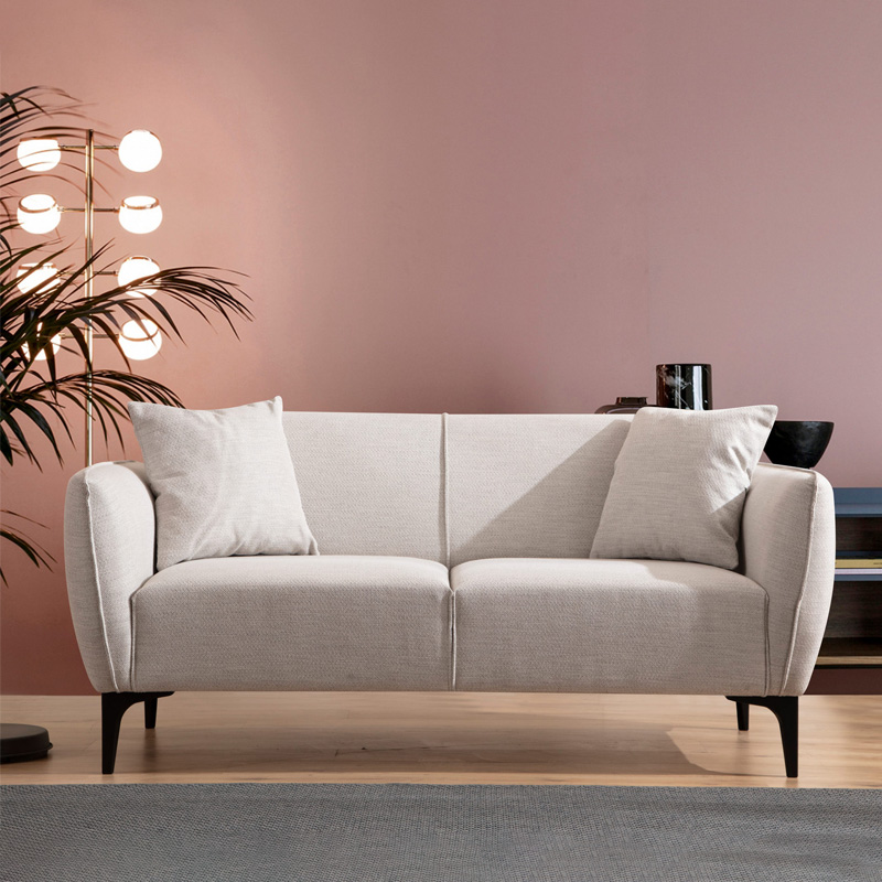 Καναπές 2θέσιος PWF-0565 ύφασμα λευκό-γκρι 160x95x67εκ