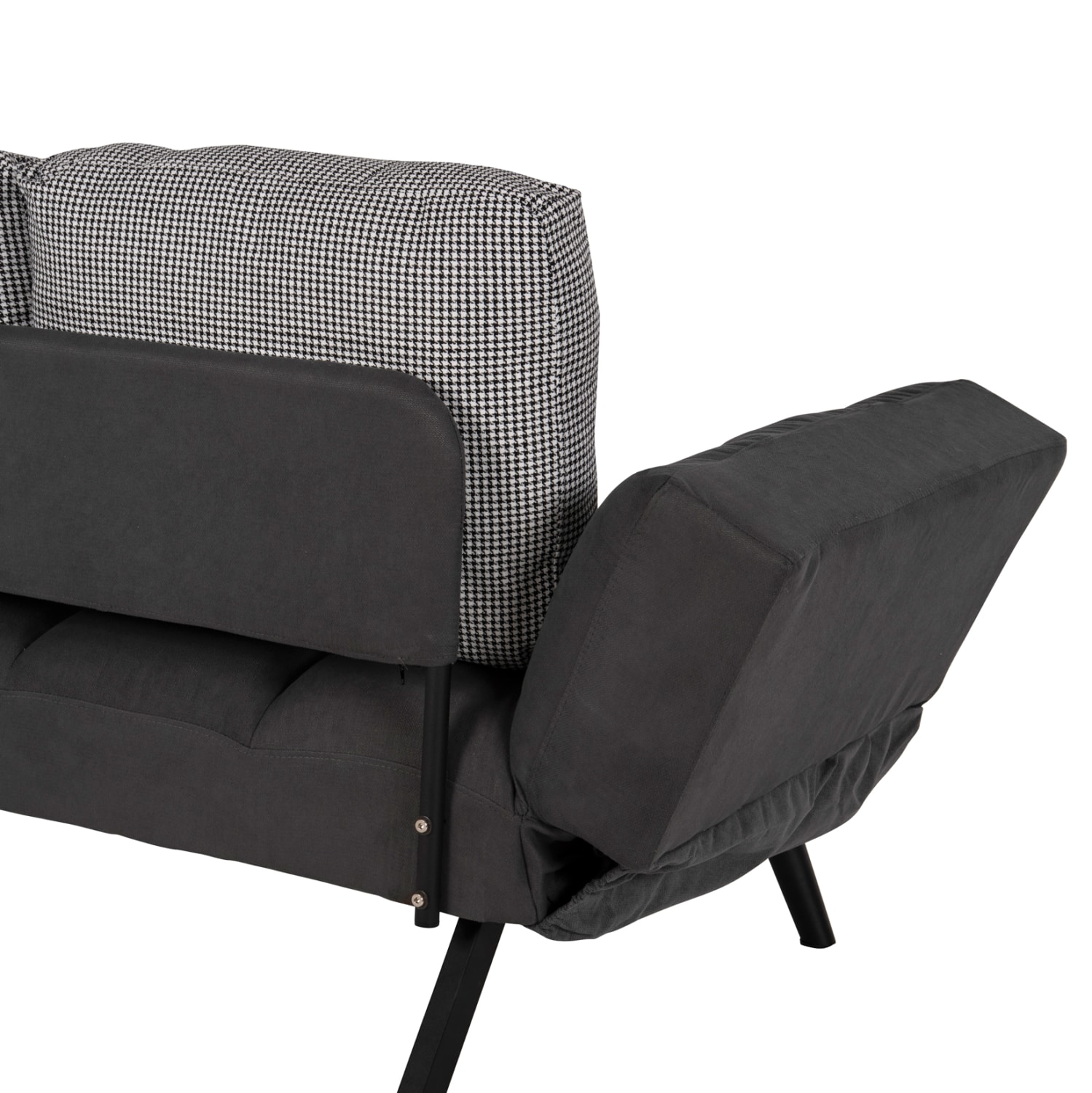 Τα πόδια του καναπέ είναι μεταλλικά σε μαύρη απόχρωση και τα αναδιπλούμενα μπράτσα ρυθμίζονται σαν μαξιλάρια σε διάφορες θέσεις.