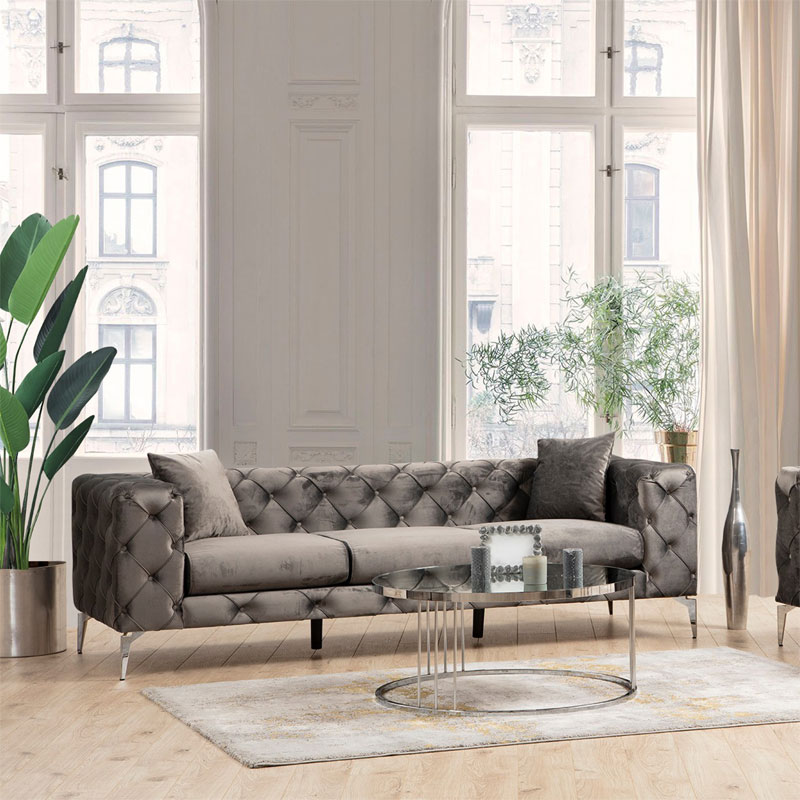 Καναπές 3θέσιος PWF-0579 τύπου Chesterfield ύφασμα ανθρακί 237x90x73εκ
