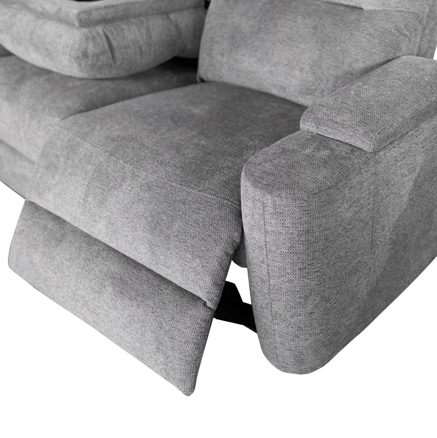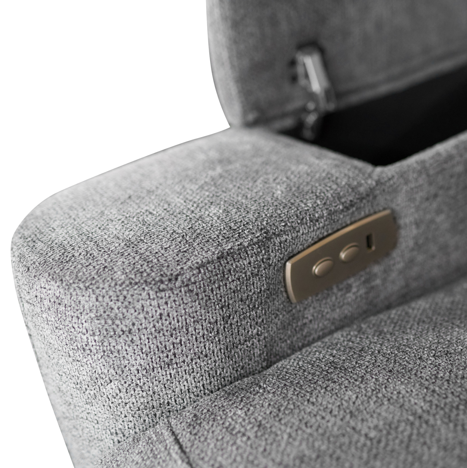 Τριθέσιος Αριστερός Γωνιακός Καναπές SYNTHIA– ΓΚΡΙ Ύφασμα, με Ηλεκτρικό Ανακλινόμενο Κάθισμα, Αποθηκευτικό Χώρο & Πτυσσόμενο Τραπέζι