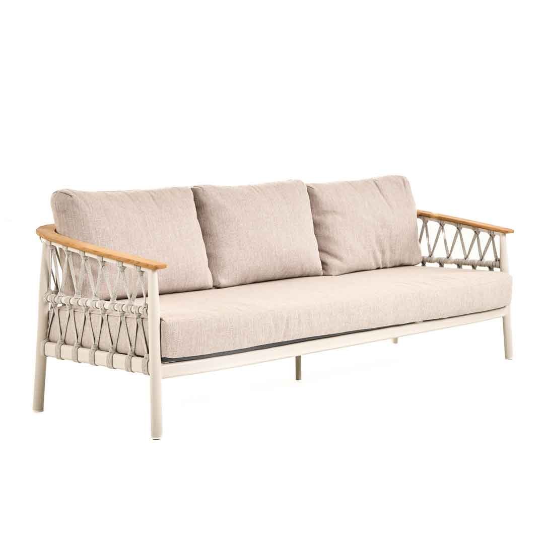 Η παρουσιάζει τον Αριστερό καναπέ Hideaway, με σκελετό από ξύλο Teak πιστοποιημένης βιώσιμης καλλιέργειας, φινίρισμα φυσικό Teak, πλέξη από σχοινί VPR – PR795 και μαξιλάρια linen grey NSK 228, αδιάβροχα. Ιδανικός για εξωτερικούς χώρους, προσφέρει άνεση, αντοχή και διαχρονική κομψότητα, αναβαθμίζοντας κάθε περιβάλλον με την υπογραφή ποιότητας.