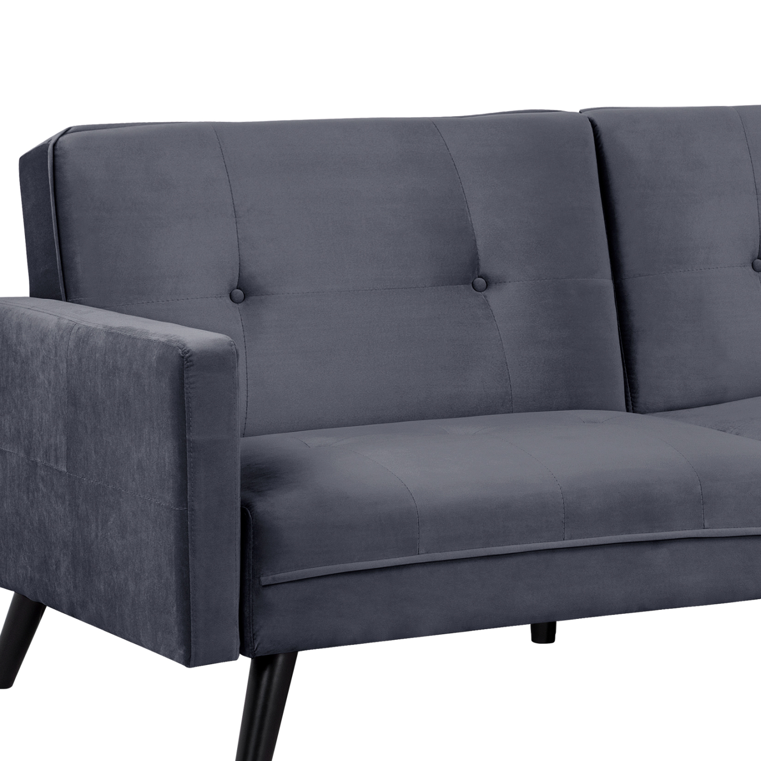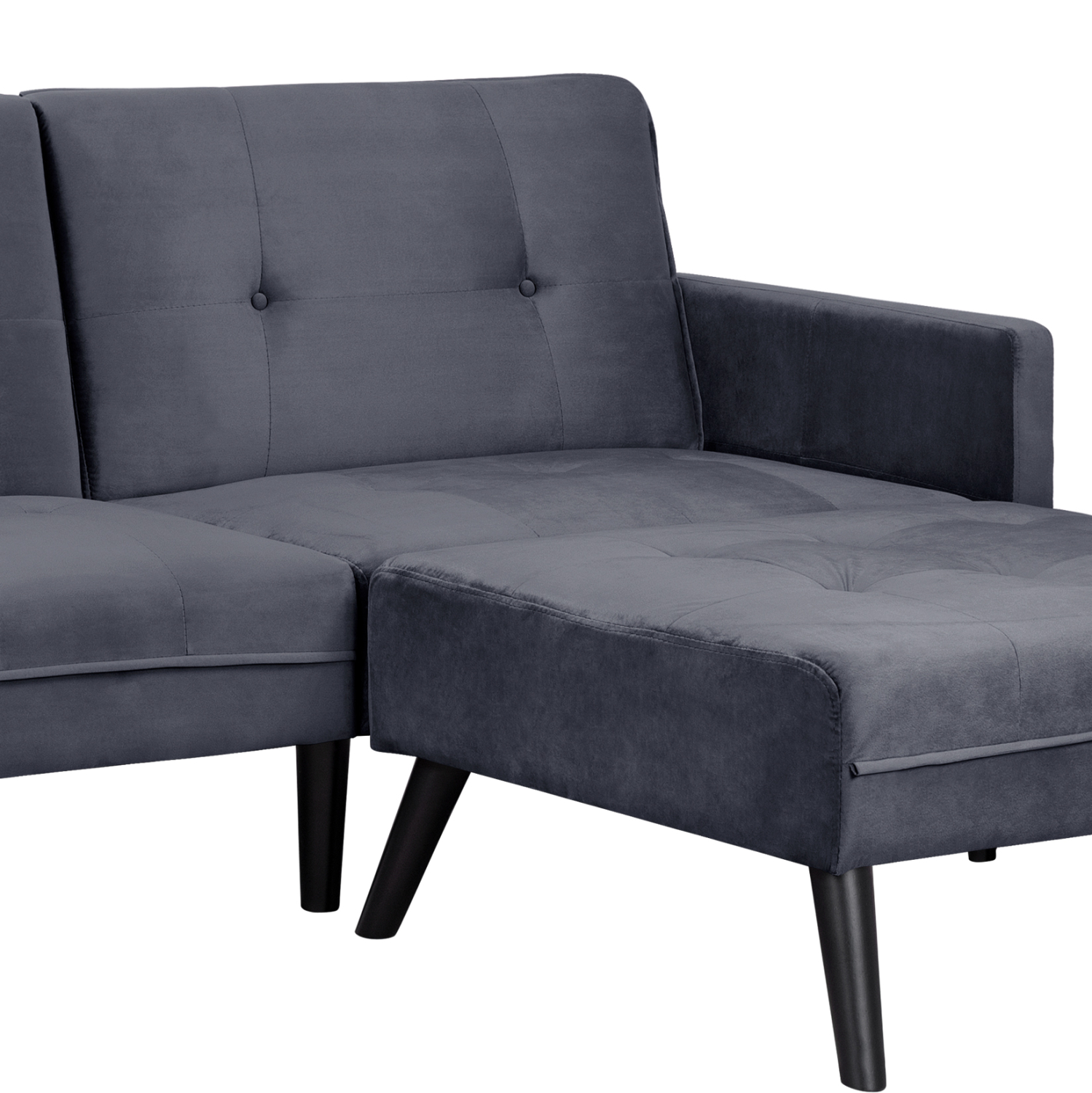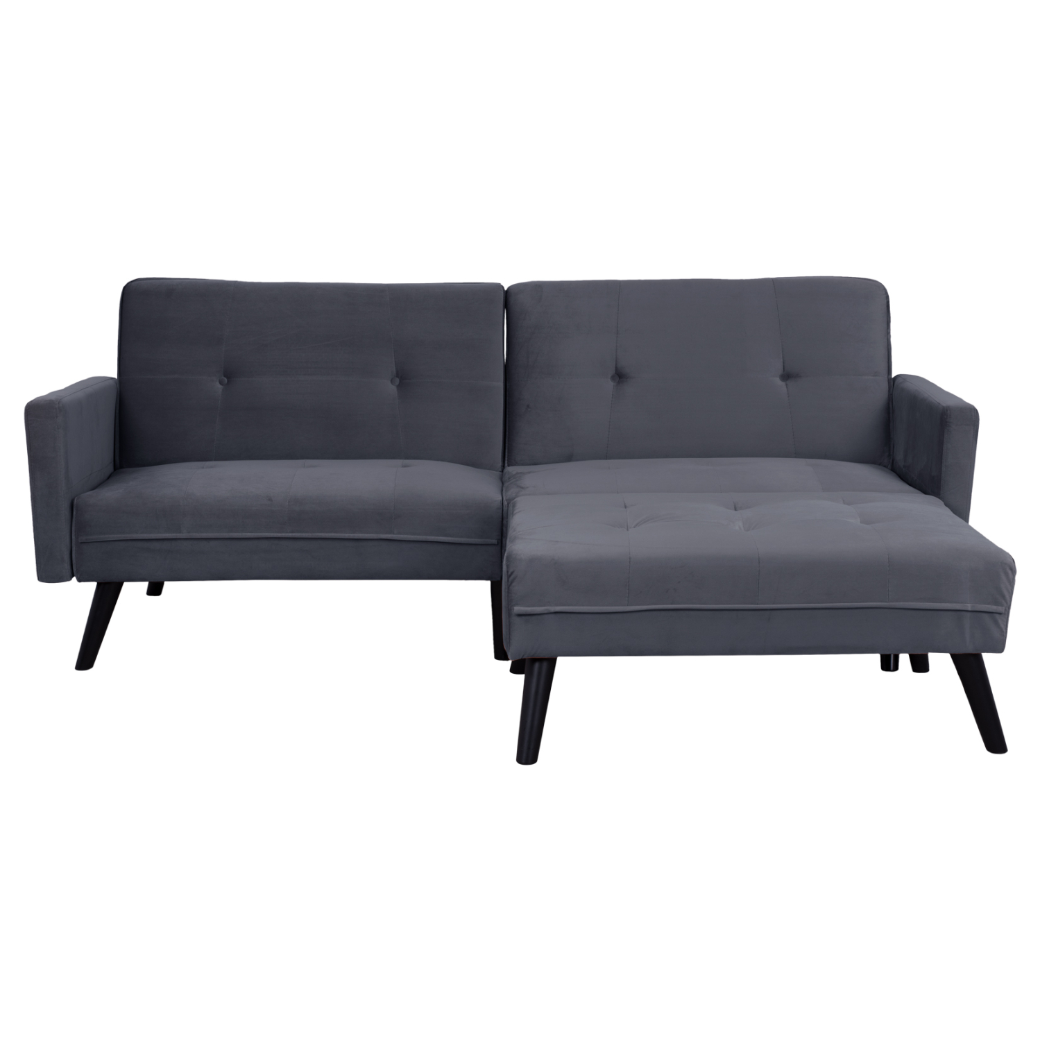 Καναπές γωνία κρεβάτι, με υποπόδιο, επενδεδυμένος με βελούδινο ύφασμα σε γκρι απόχρωση 211X158X83Y εκ.