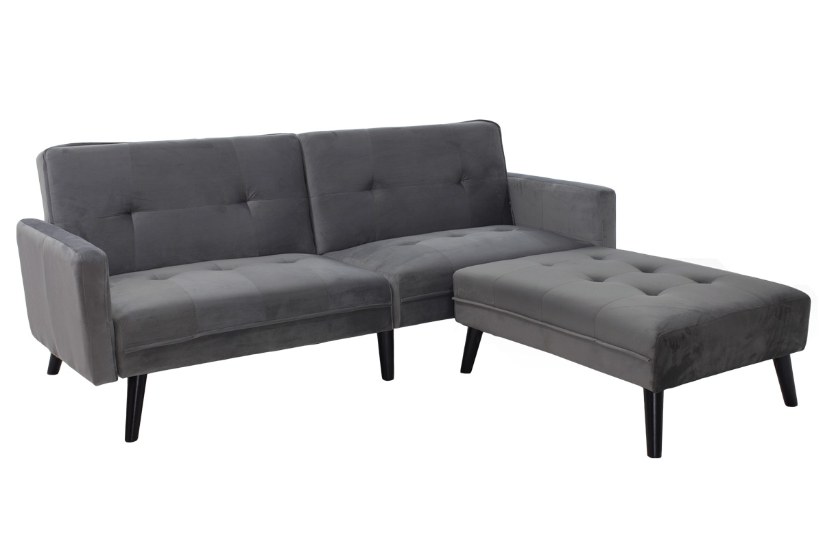 Γωνιακός καναπές-κρεβάτι Dream 209x87x80εκ με σκαμπό 95x70x40εκ σε γκρι/ασημί βελούδο