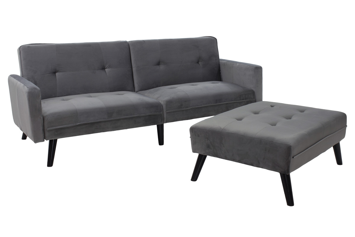 Ένας καναπές σχεδιασμένος με μοντέρνο design που αποπνέει πολυτέλεια, φέρει εύχρηστο μεταλλικό μηχανισμό ώστε να μετατρέπεται με μία απλή κίνηση σε κρεβάτι. Και εξτρά μεγάλο σκαμπό που αποτελεί προέκταση του καναπέ για να χαλαρώσετε ή να ξαπλώσετε.