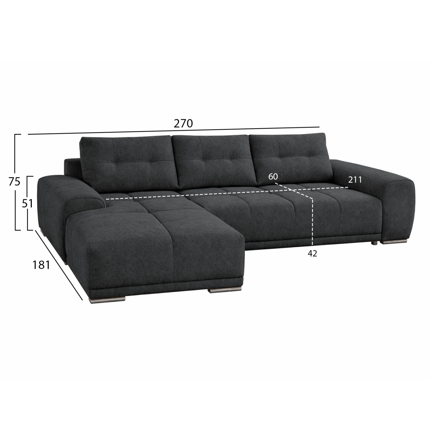 ΚΑΝΑΠΕΣ ΚΡΕΒΑΤΙ ΑΡΙΣΤΕΡΗ ΓΩΝΙΑ COMFYRA HM3336.01L ΓΚΡΙ ΥΦΑΣΜΑ 270x181x75Υεκ