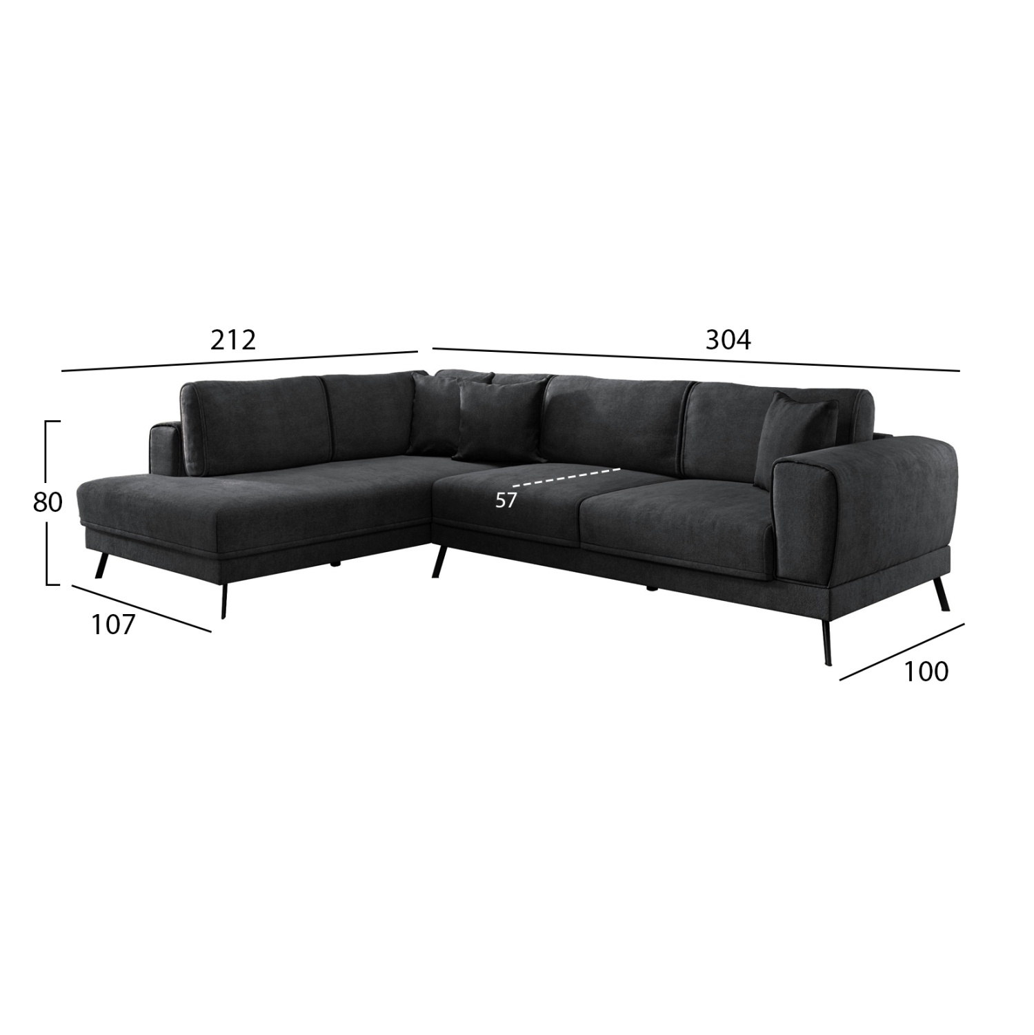 •Συνολικές διαστάσεις καναπέ: 304x212x80Υ εκ.