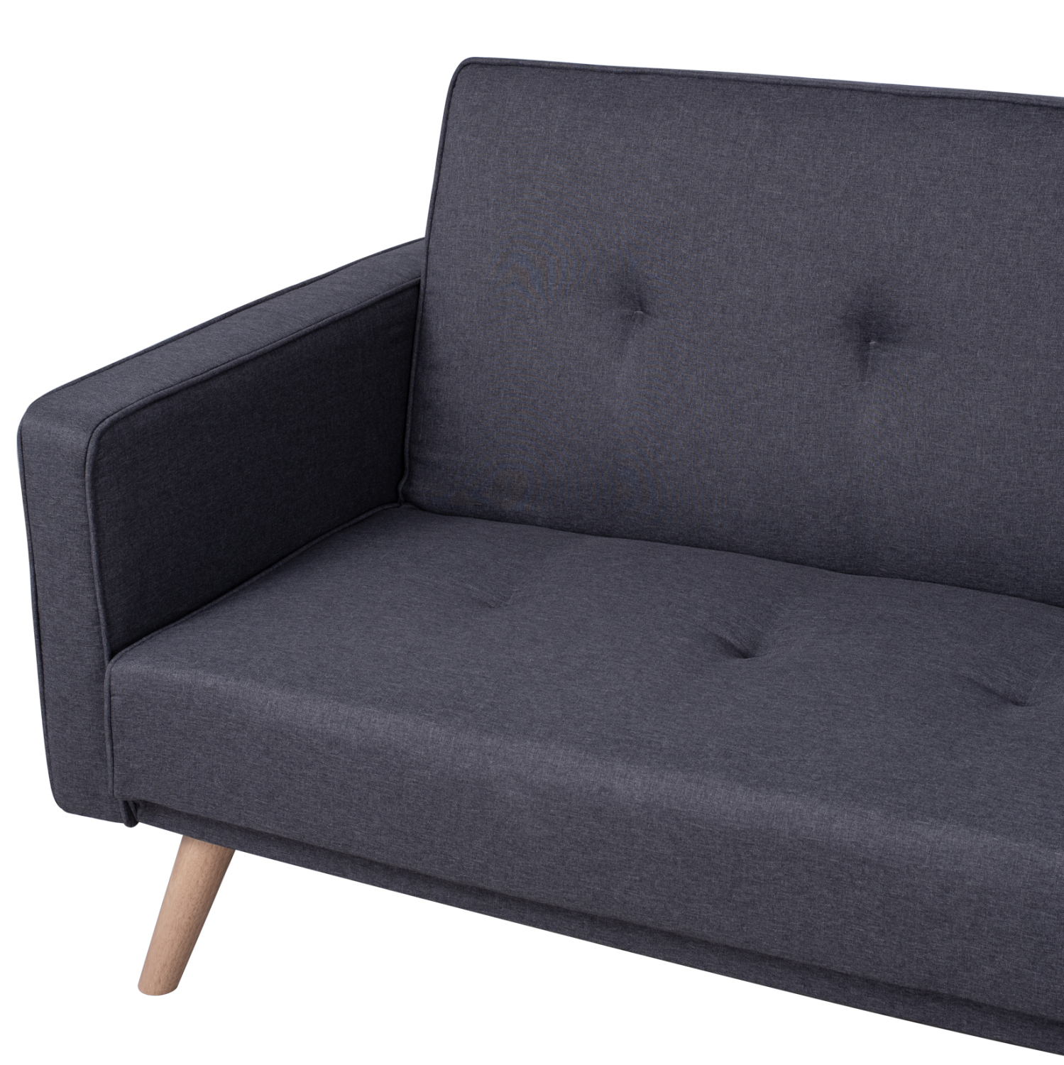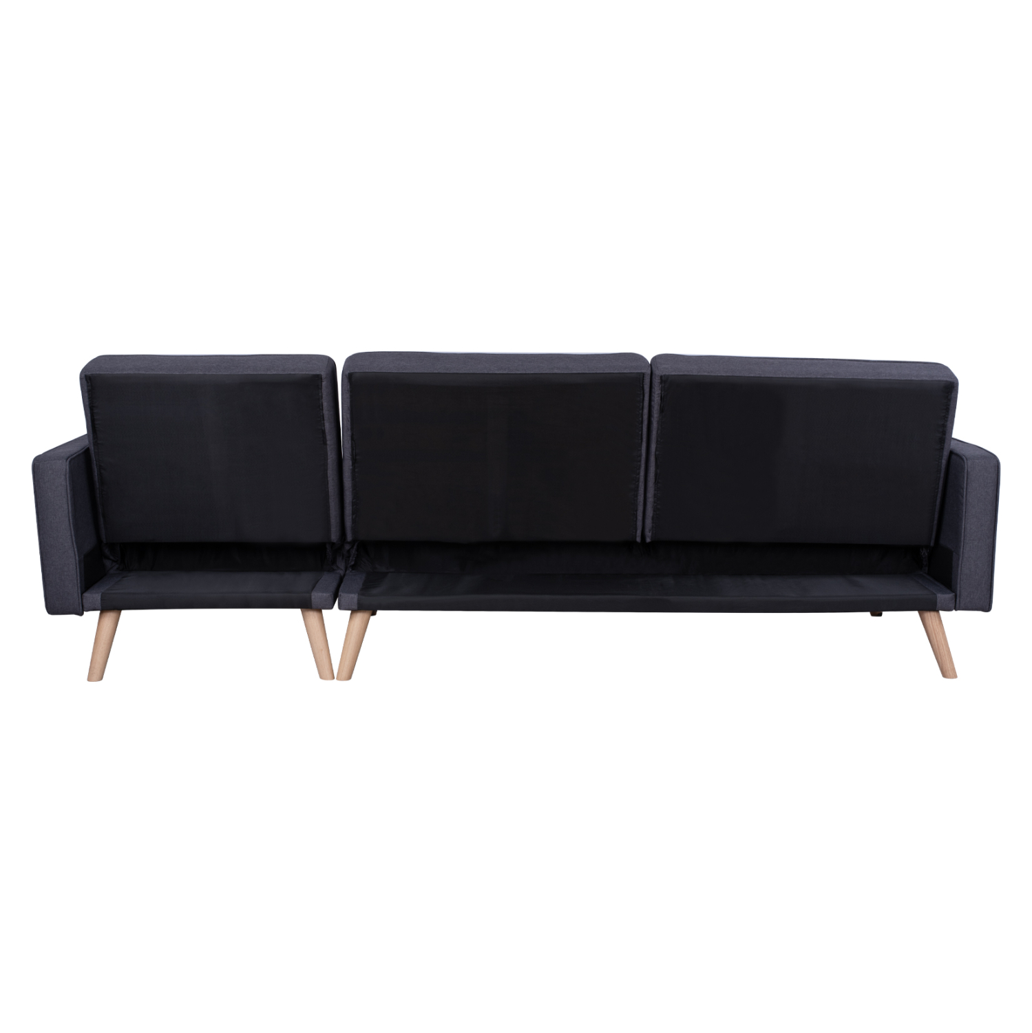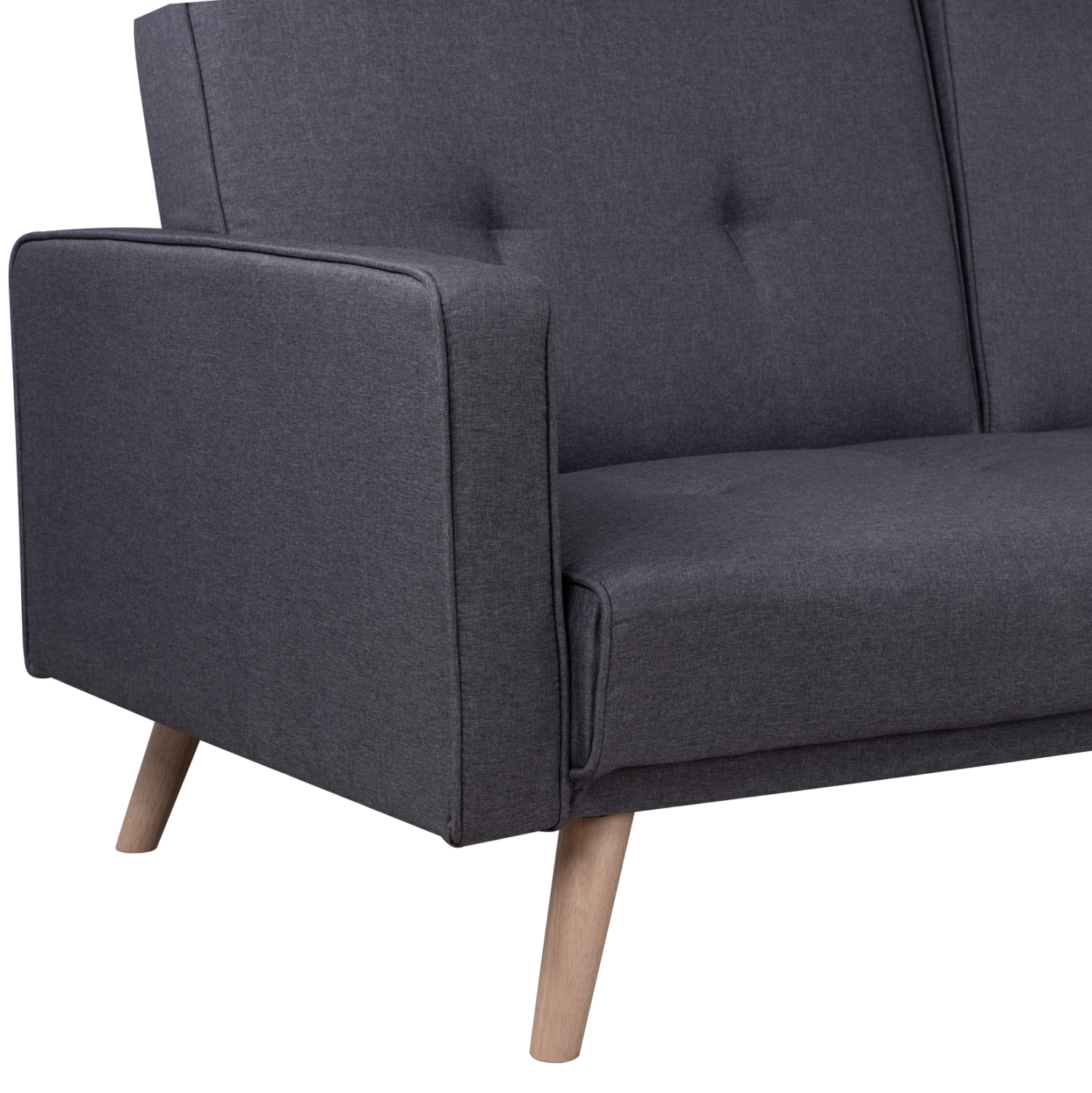 Τα πόδια του καναπέ είναι από ξύλο σε φυσική απόχρωση, επίσης η πλάτη του, έχει την δυνατότητα να πέφτει πίσω και να μετατρέπεται εύκολα σε ένα άνετο κρεβάτι.
