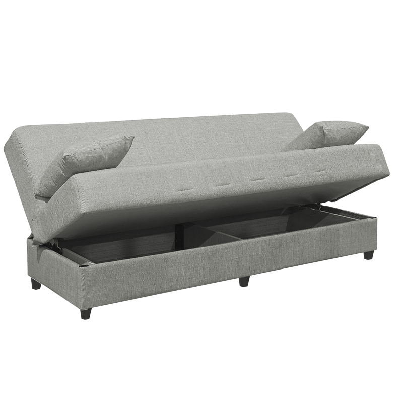 Καναπές-κρεβάτι με αποθηκευτικό χώρο τριθέσιος Romina ανοιχτό γκρι ύφασμα 190x85x90εκ