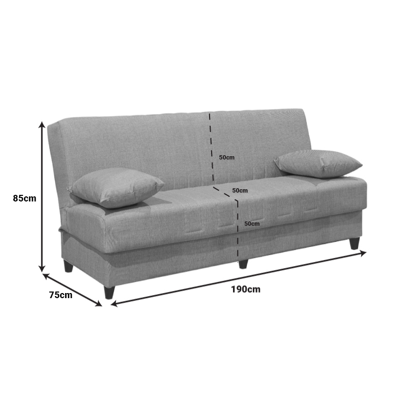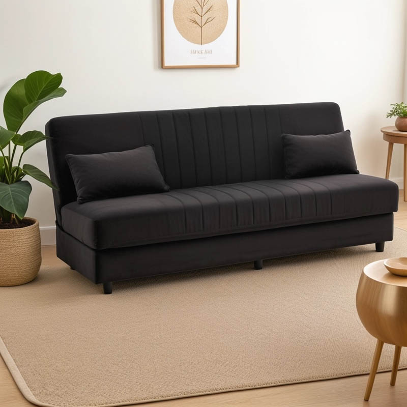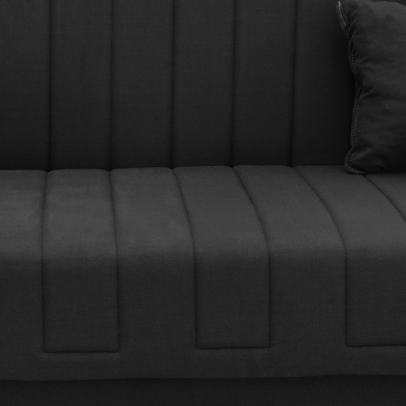 Καναπές-κρεβάτι με αποθηκευτικό χώρο τριθέσιος Romina μαύρο ύφασμα 190x85x90εκ