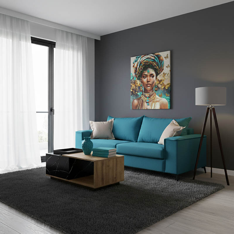 καναπέ και μαξιλαριών πλάτης: Πετρόλ – Φέρει δύο διακοσμητικά μαξιλαράκια