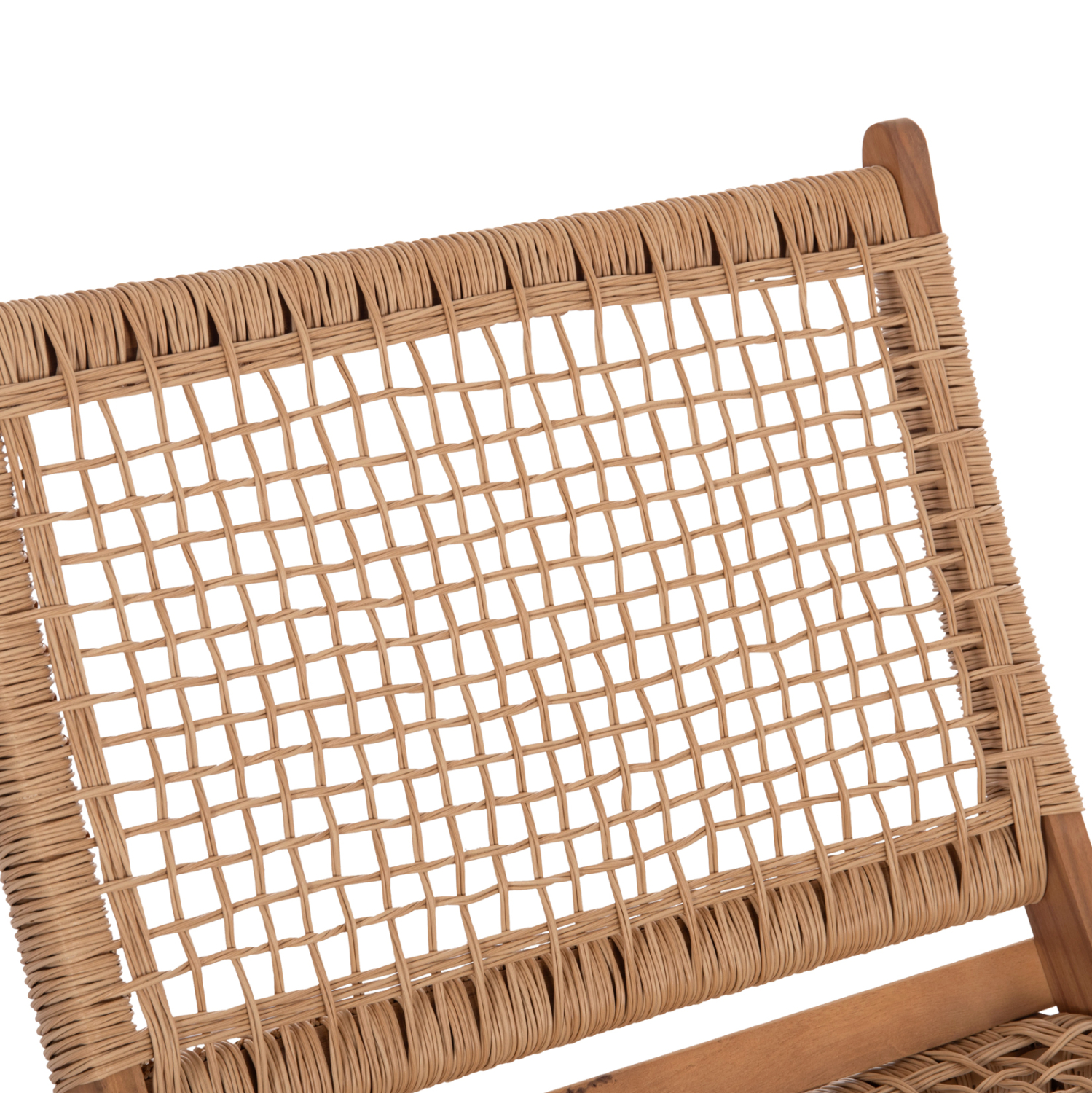 Η lounge καρέκλα FERMO είναι χαμηλή χωρίς μπράτσα, αλλά με όμορφο design. Το κύριο χαρακτηριστικό της είναι ότι «διπλώνει» και αποθηκεύεται εύκολα πιάνοντας λίγο χώρο. Ο σκελετός της είναι από ποιοτικό ξύλο, ενώ τόσο η χαμηλή πλάτη όσο και το φαρδύ κάθισμα είναι κατασκευασμένα από συνθετικό wicker άριστης ποιότητας.