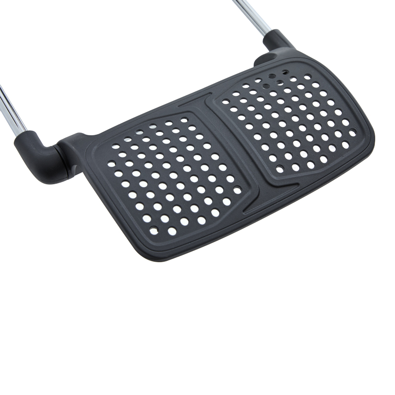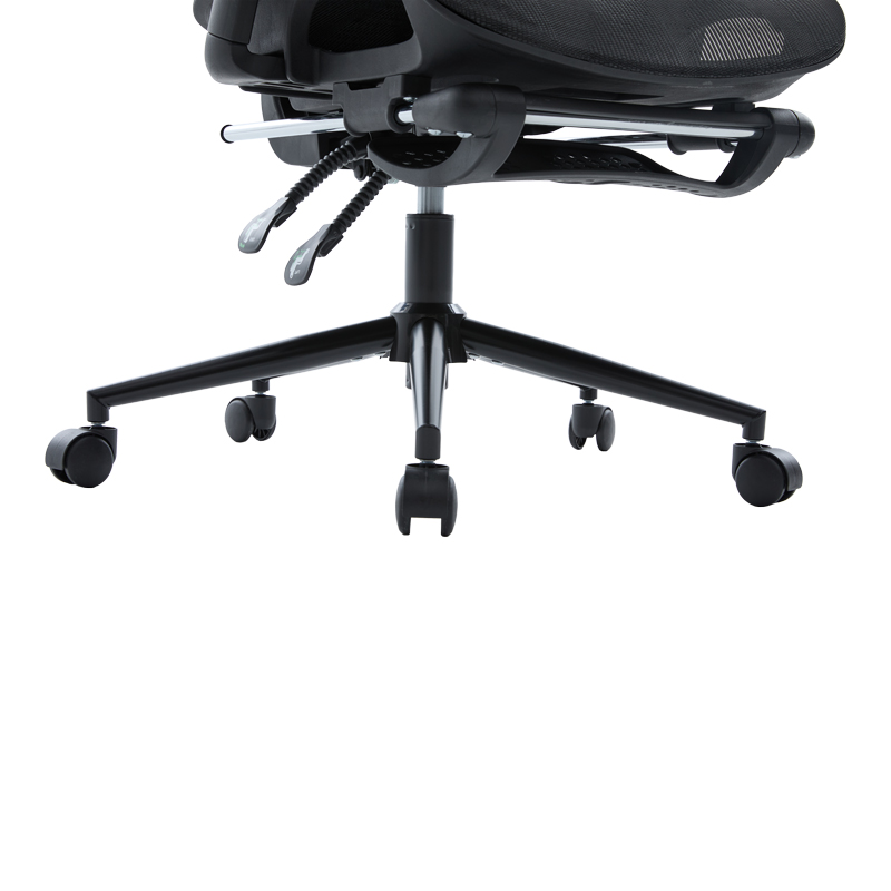- Υλικά & Κατασκευή: Η επιφάνεια είναι κατασκευασμένη από ενισχυμένο διχτυωτό (thickening mesh) ύφασμα, εξασφαλίζοντας άριστη διαπνοή και ανθεκτικότητα. Ο σκελετός είναι από PP (Πολυπροπυλένιο), ενώ η στιβαρή βάση (350mm) είναι μεταλλική τύπου KD (Knock-Down), προσδίδοντας σταθερότητα. Οι τροχοί είναι κατασκευασμένοι για να προσφέρουν ομαλή και αθόρυβη κύλιση.
