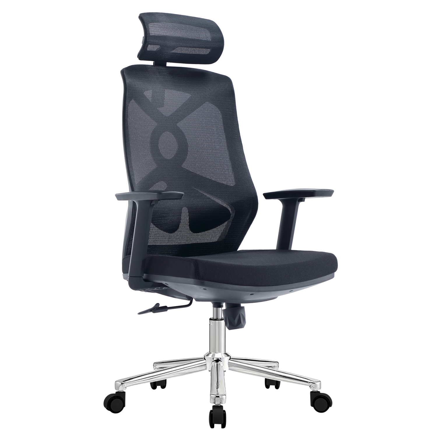 4.Premium Contrast: Ο συνδυασμός του μαύρου σκελετού, της χρωμιωμένης βάσης και των γκρι τροχών δίνει μια μοντέρνα, high-tech αισθητική στο γραφείο σας.