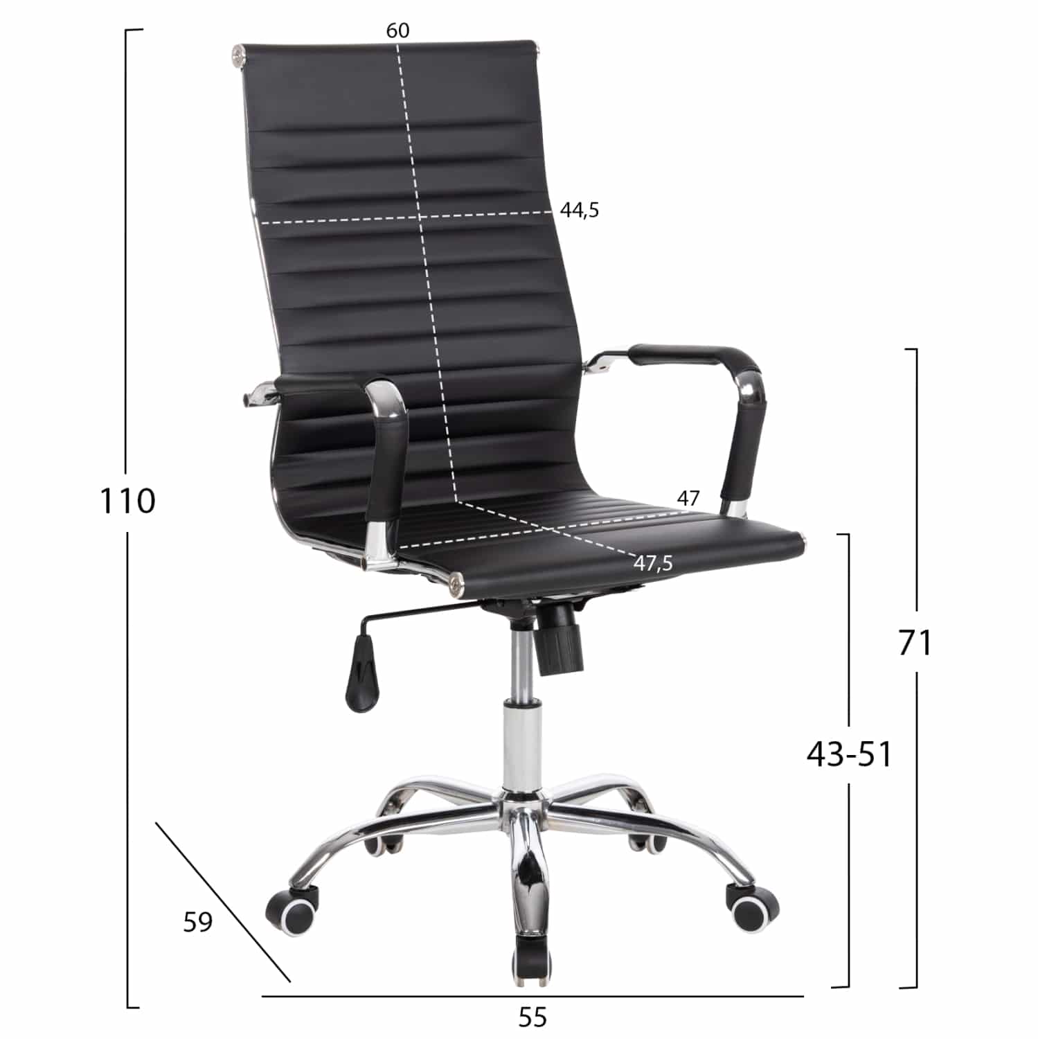 ΚΑΡΕΚΛΑ ΓΡΑΦΕΙΟΥ HM1059.31 ΜΑΥΡΟ PU BOSS ΔΙΕΥΘΥΝΤΟΥ ΠΟΔΙ ΧΡΩΜΙΟΥ 53x57x109Υεκ.