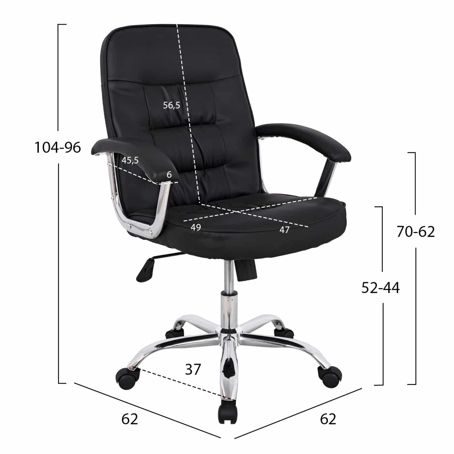 ΚΑΡΕΚΛΑ ΓΡΑΦΕΙΟΥ RYLIE HM1113 ΜΕ ΜΑΥΡΟ PU ΚΑΙ ΒΑΣΗ ΧΡΩΜΙΟΥ 62x62x104 cm.