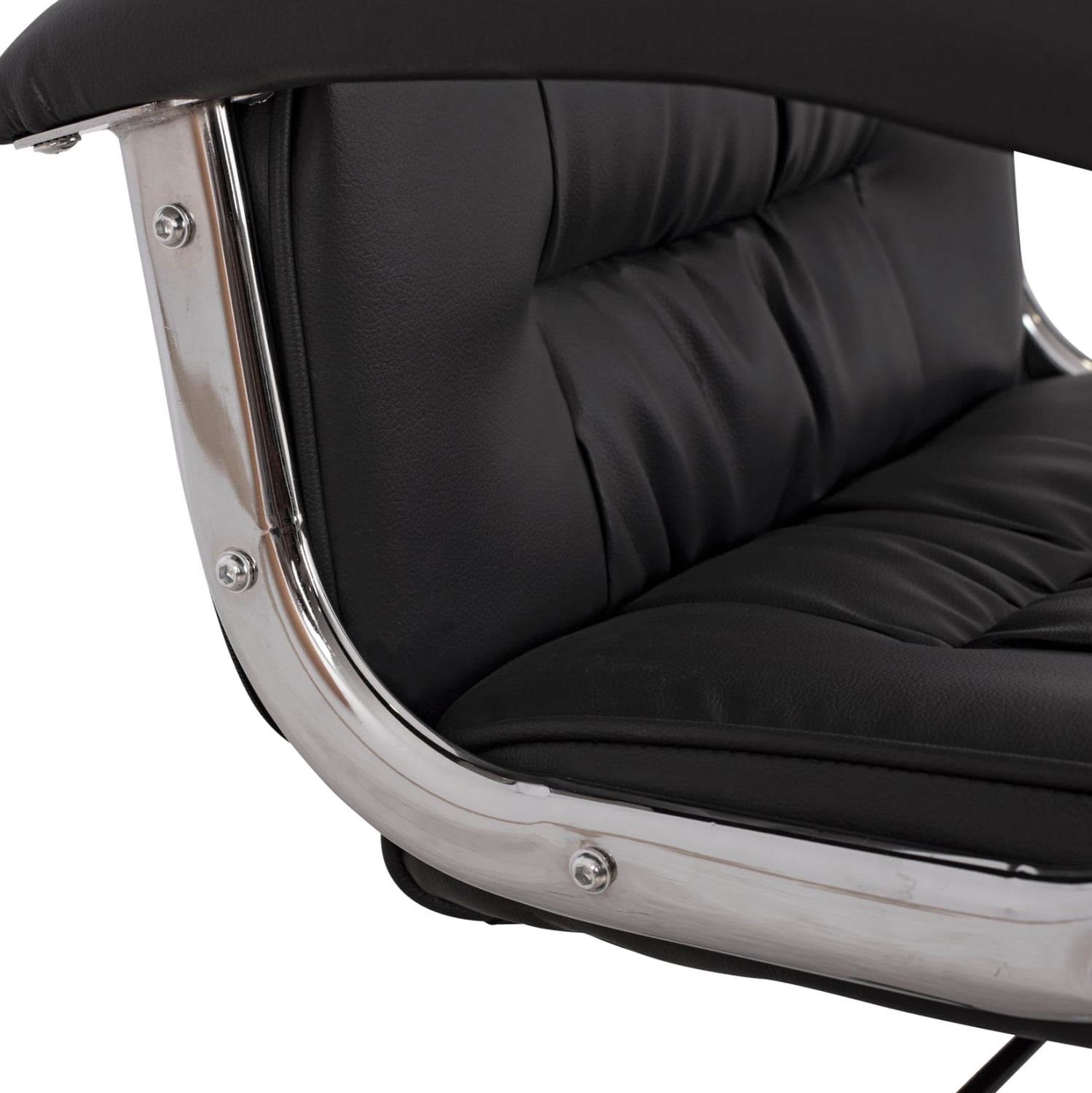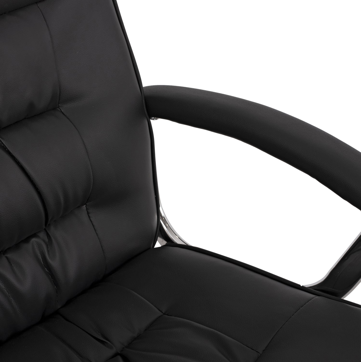 Διευθυντική καρέκλα γραφείου “RYLIE” σε μαύρο χρώμα. Μια «πλούσια» καρέκλα γραφείου με ψηλά μπράτσα με ελαφριά κλίση, επενδυμένα με μια λεπτή στρώση αφρολέξ σε PU δέρμα. Η πλάτη είναι ημίψηλη με πλούσια στρώση από αφρώδη υλικά για άνεση κατά την χρήση και υποστηρίζει ολόκληρο τον κορμό σας, ενώ είναι επενδυμένη με υψηλής ποιότητας PU δέρμα, όπως επίσης και το αναπαυτικό κάθισμα. Η βάση είναι χρωμιωμένη σε σχήμα «αστέρι» με κυρτά πόδια και μαύρα ροδάκια.