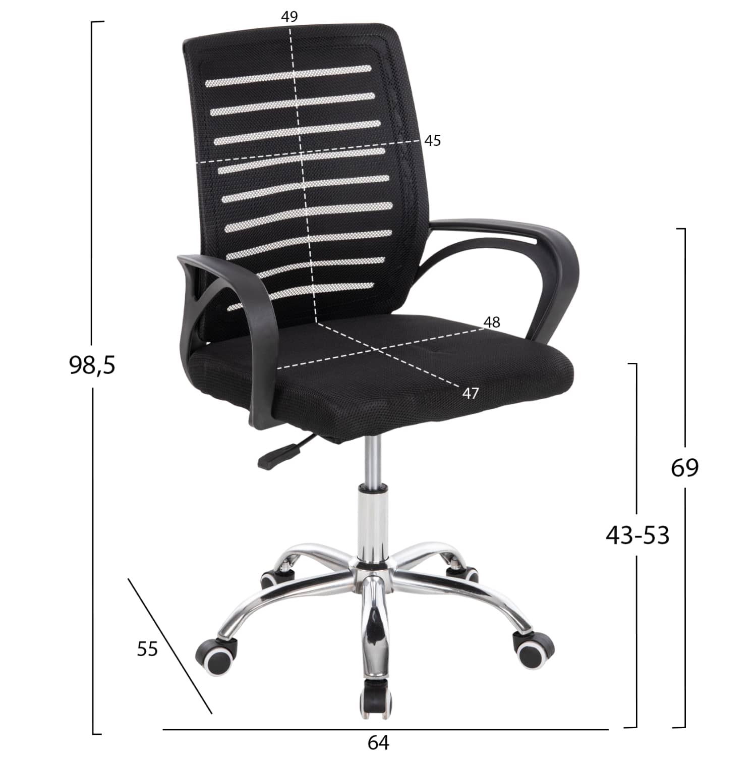 ΚΑΡΕΚΛΑ ΓΡΑΦΕΙΟΥ TRAIL HM1192 ΜΑΥΡΟ MESH-ΠΟΔΙ ΧΡΩΜΙΟΥ 64x55x98,5Υεκ.