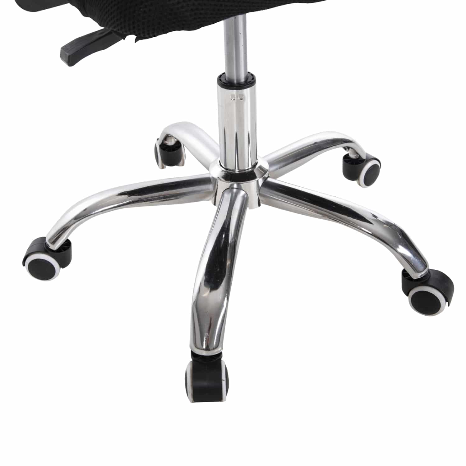 Τέλος, τα πόδια καταλήγουν στους μαύρους τροχίσκους της καρέκλας με λευκή ρίγα που είναι επίσης από ειδικό nylon υλικό και επιφάνεια κύλισης από μαλακή πολυουρεθάνη για αθόρυβη κύλιση και ταυτόχρονα προστασία του πατώματος.