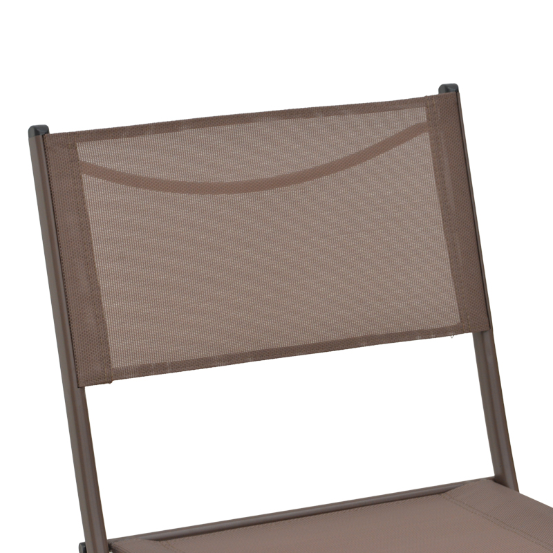 - Επένδυση έδρας και πλάτης από εξαιρετικής ποιότητας textilene. Το textilene είναι ύφασμα μεγάλης αντοχής στην ηλιακή ακτινοβολία και την υγρασία ενώ παράλληλα αφήνει το δέρμα να “αναπνέει” δημιουργώντας έτσι άνεση στο κάθισμα.