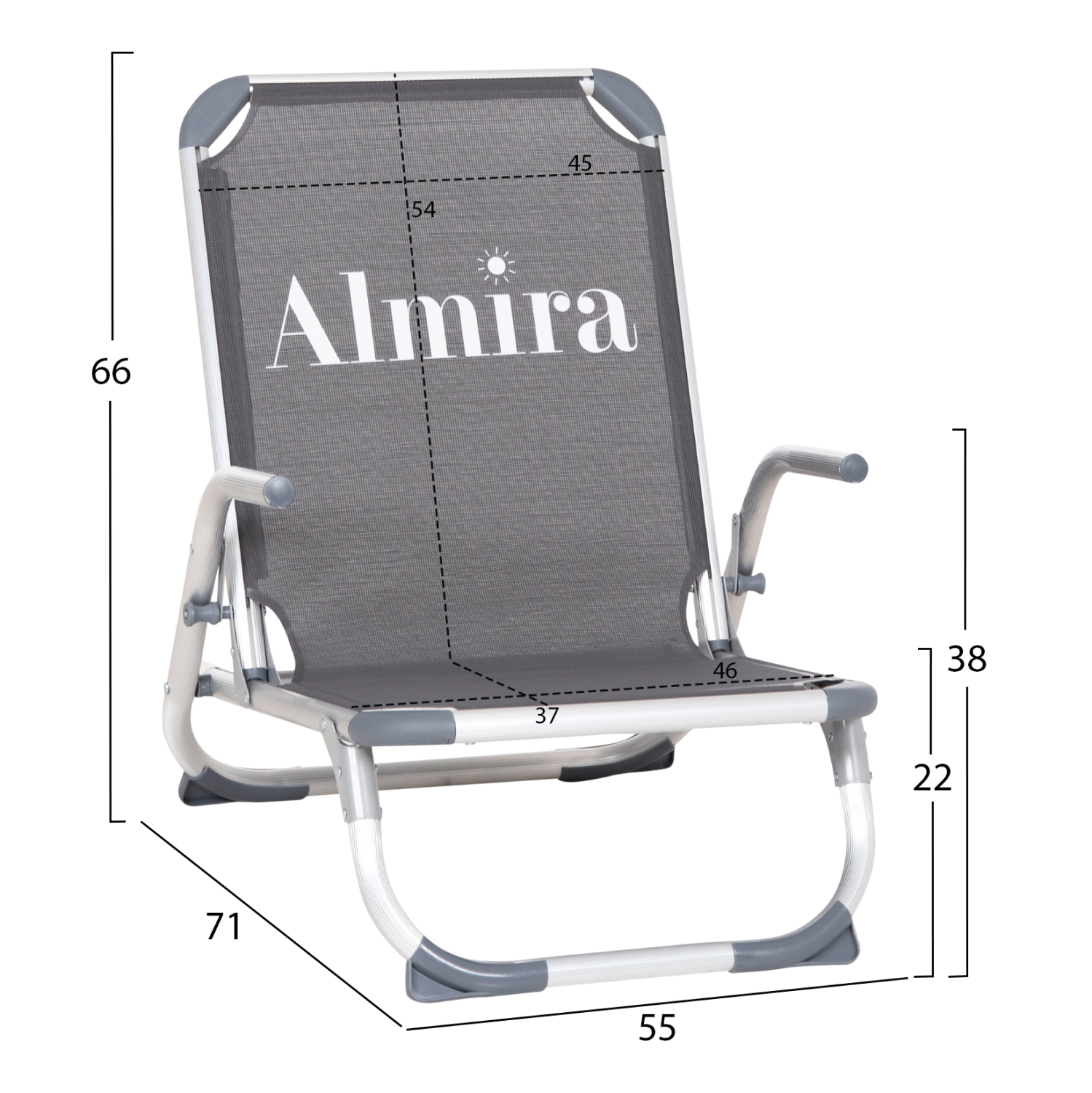 ΚΑΡΕΚΛΑΚΙ ΠΑΡΑΛΙΑΣ ΑΛΟΥΜINIOY ΒΑΡ.ΤΥΠΟΥ ΨΗΛΗ ΠΛΑΤΗ ALMIRA HM5053.10 ΓΚΡΙ 55x71x66Υεκ