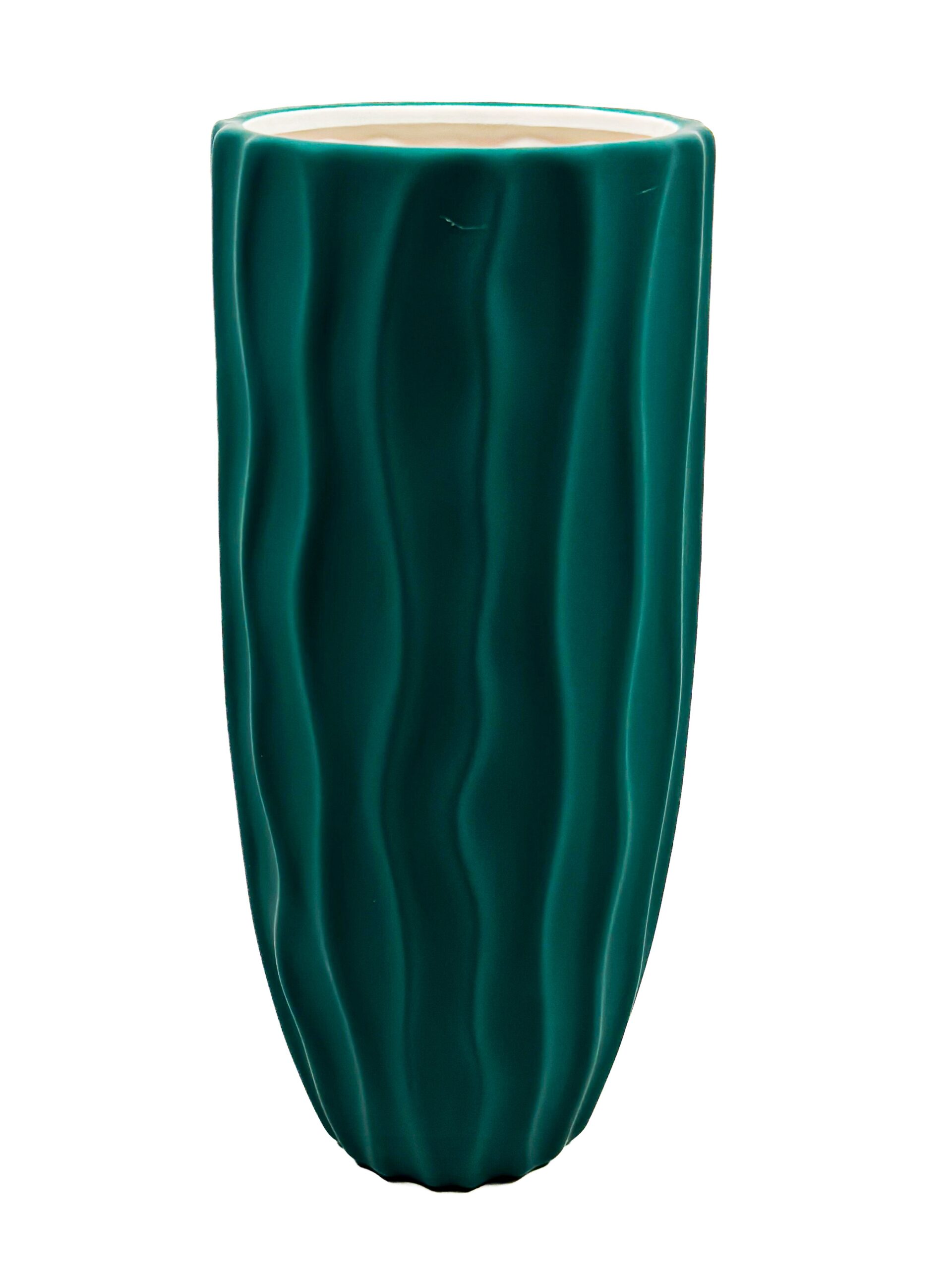 Κεραμικό Βάζο Κυματιστό Φ 12Χ29 cm Σκούρο Πράσινο
