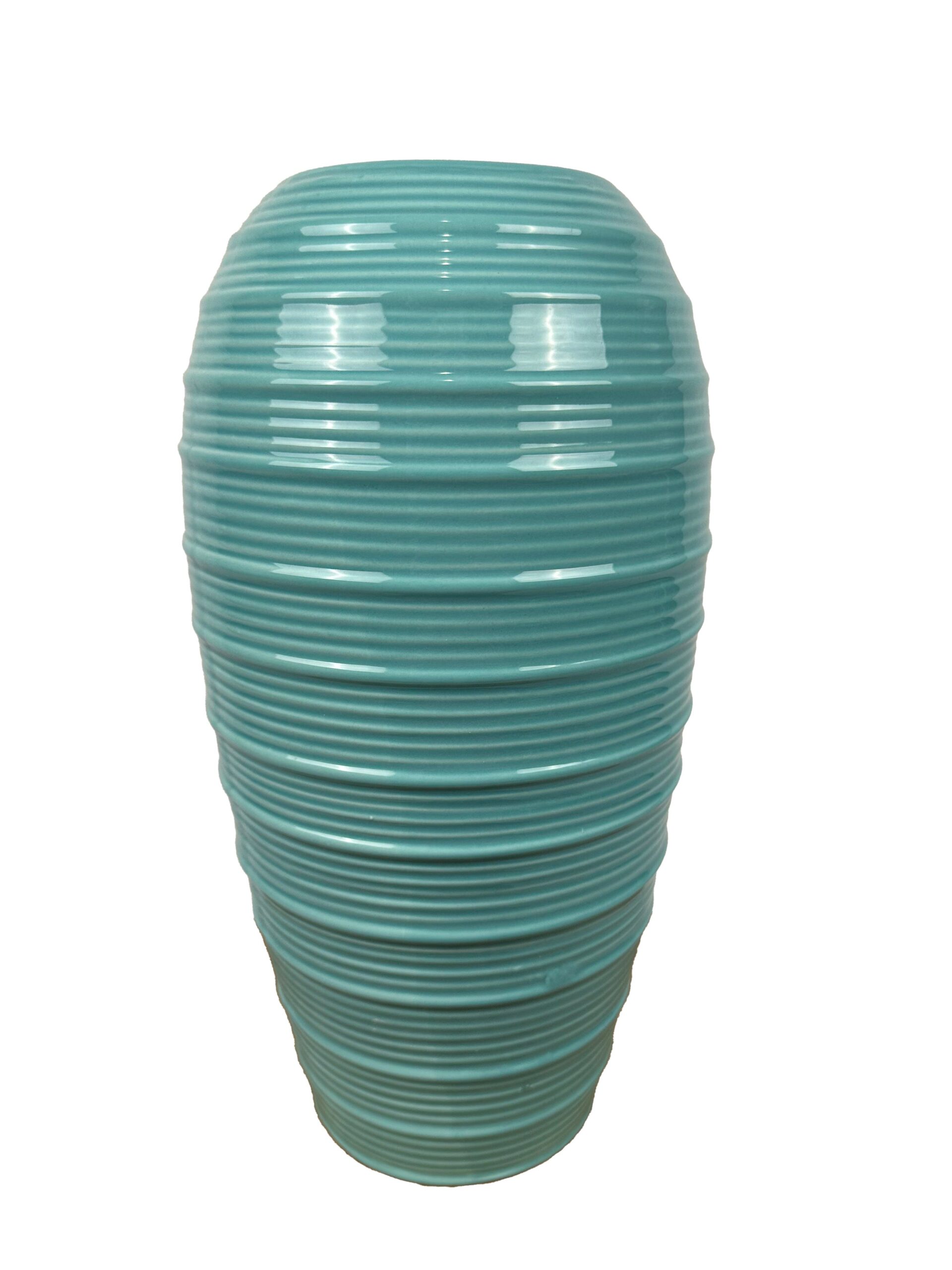 Κεραμικό Βάζο Στρογγυλό με Ρίγα Φ 8Χ30 cm 2 Χρώματα Γαλάζιο