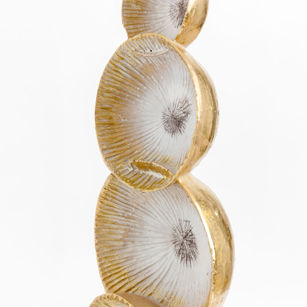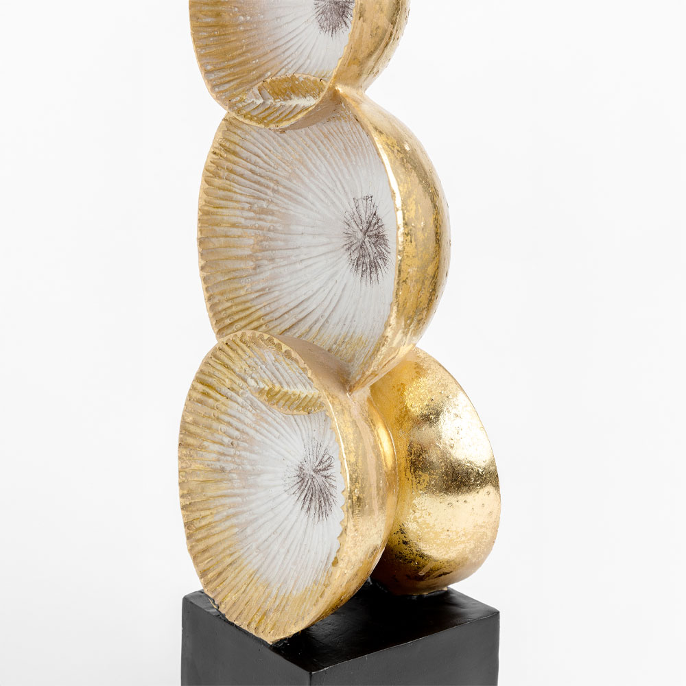 Το διακοσμητικό KESA είναι ένα εντυπωσιακό totem από polyresin, με χρυσά σφαιρικά στοιχεία τοποθετημένα πάνω σε μια στιβαρή μαύρη βάση. Ο σχεδιασμός του παραπέμπει σε tribal–modern αισθητική, συνδυάζοντας γεωμετρική συμμετρία και minimal πολυτέλεια. Η ανοδική διάταξη δημιουργεί αίσθηση ύψους και κύρους, καθιστώντας το ιδανικό για κονσόλες, επαγγελματικούς χώρους, ξενοδοχεία, design studios και contemporary art corners. Το χρυσό φινίρισμα φωτίζει το περιβάλλον, ενώ το polyresin προσφέρει σταθερότητα και διάρκεια.