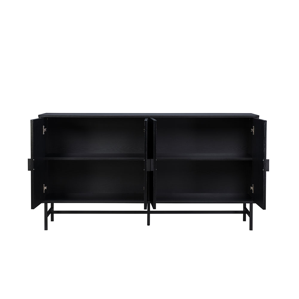 Ο μπουφές Kimono συνδυάζει τη διαχρονική κομψότητα με τον μοντέρνο σχεδιασμό, δημιουργώντας ένα εντυπωσιακό έπιπλο που αναδεικνύει κάθε χώρο. Η επένδυσή του από μελαμίνη σε μαύρη απόχρωση αποπνέει μυστήριο και φινέτσα, ενώ οι ανάγλυφες λεπτομέρειες προσδίδουν έναν διακριτικό χαρακτήρα πολυτέλειας. Η μαύρη μεταλλική βάση ολοκληρώνει την αισθητική του με industrial πινελιές, προσφέροντας παράλληλα σταθερότητα και στιβαρότητα. Ο μπουφές Kimono είναι η ιδανική επιλογή για σαλόνια και τραπεζαρίες που θέλουν να ξεχωρίσουν με στυλ και λειτουργικότητα.