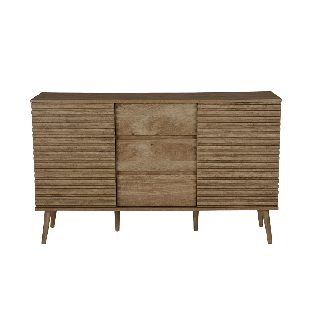 Ο μπουφές Kiros συνδυάζει τη φυσική αισθητική με την πρακτικότητα, δημιουργώντας ένα κομψό και λειτουργικό έπιπλο. Με επένδυση από paper wood σε φυσική απόχρωση, προσδίδει ζεστασιά και διαχρονική φινέτσα στον χώρο σας. Διαθέτει τρία ευρύχωρα συρτάρια και δύο ντουλάπια, προσφέροντας άφθονο αποθηκευτικό χώρο για να οργανώσετε με στυλ τα αντικείμενά σας. Το λιτό και εκλεπτυσμένο σχέδιό του καθιστά τον μπουφέ Kiros ιδανική επιλογή για σαλόνια και τραπεζαρίες που αναζητούν ένα μοντέρνο και ταυτόχρονα φιλόξενο ύφος.
