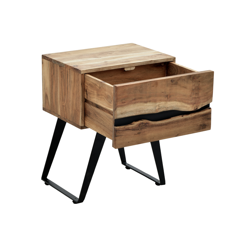 Κομοδίνο Imena μασίφ ξύλο Acacia σε φυσικό απόχρωση με μαύρα μεταλλικά πόδια 45x35x56εκ