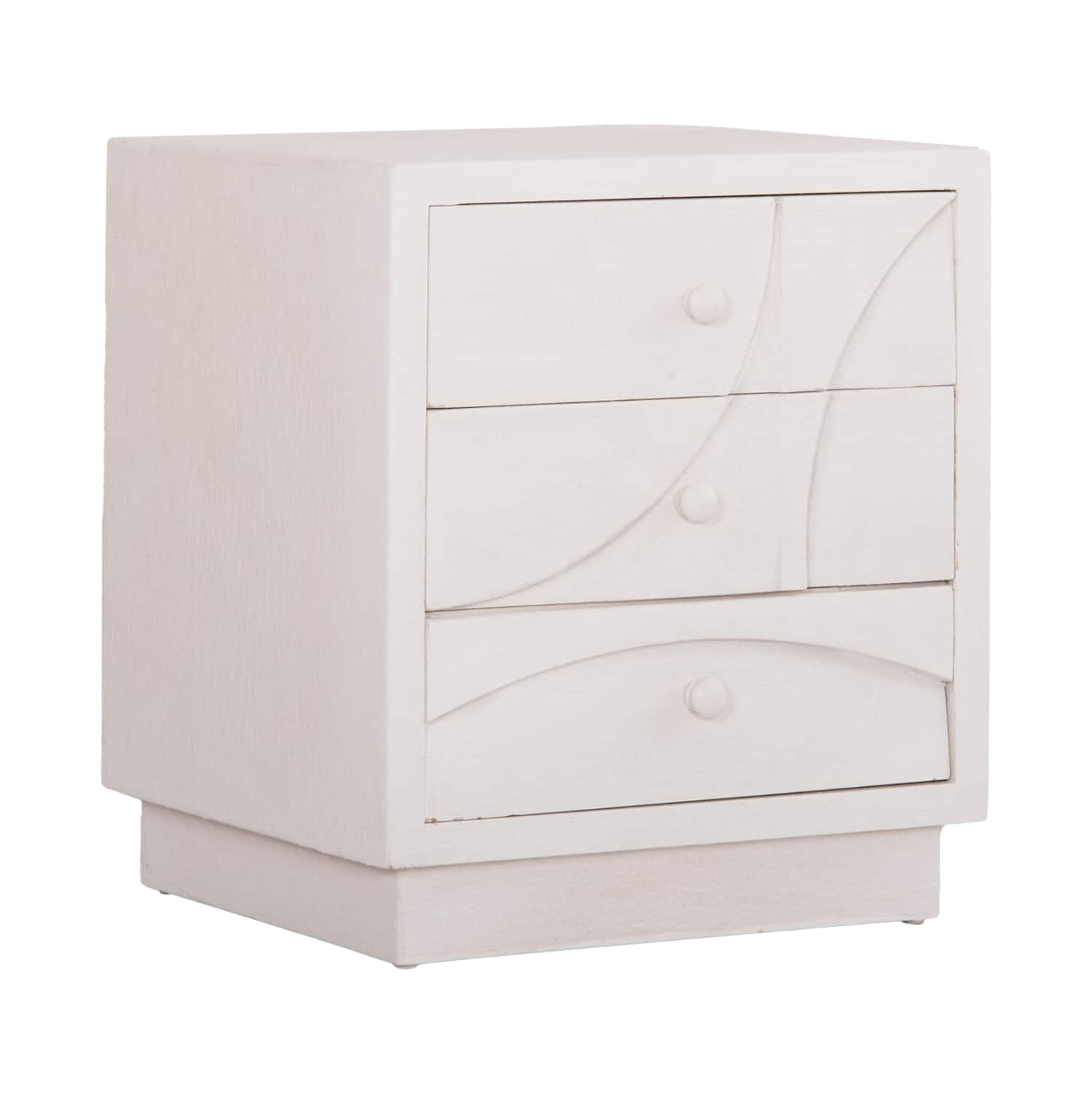 Το χειροποίητο κομοδίνο αυτό είναι εξολοκλήρου κατασκευασμένο από MDF σε ΥΠΟΛΕΥΚΟ χρώμα με υφή σαγρέ τσιμέντου, που αποτελεί την πιο σύγχρονη τάση στον τομέα του interior design. Διαθέτει 3 συρτάρια με ανάγλυφα σχέδια, που προσφέρουν αρκετό χώρο για τοποθέτηση όλων όσων θέλετε σε ένα κομοδίνο. Ενδεικνυται για μια “νησιωτικού” στυλ διακόσμηση!