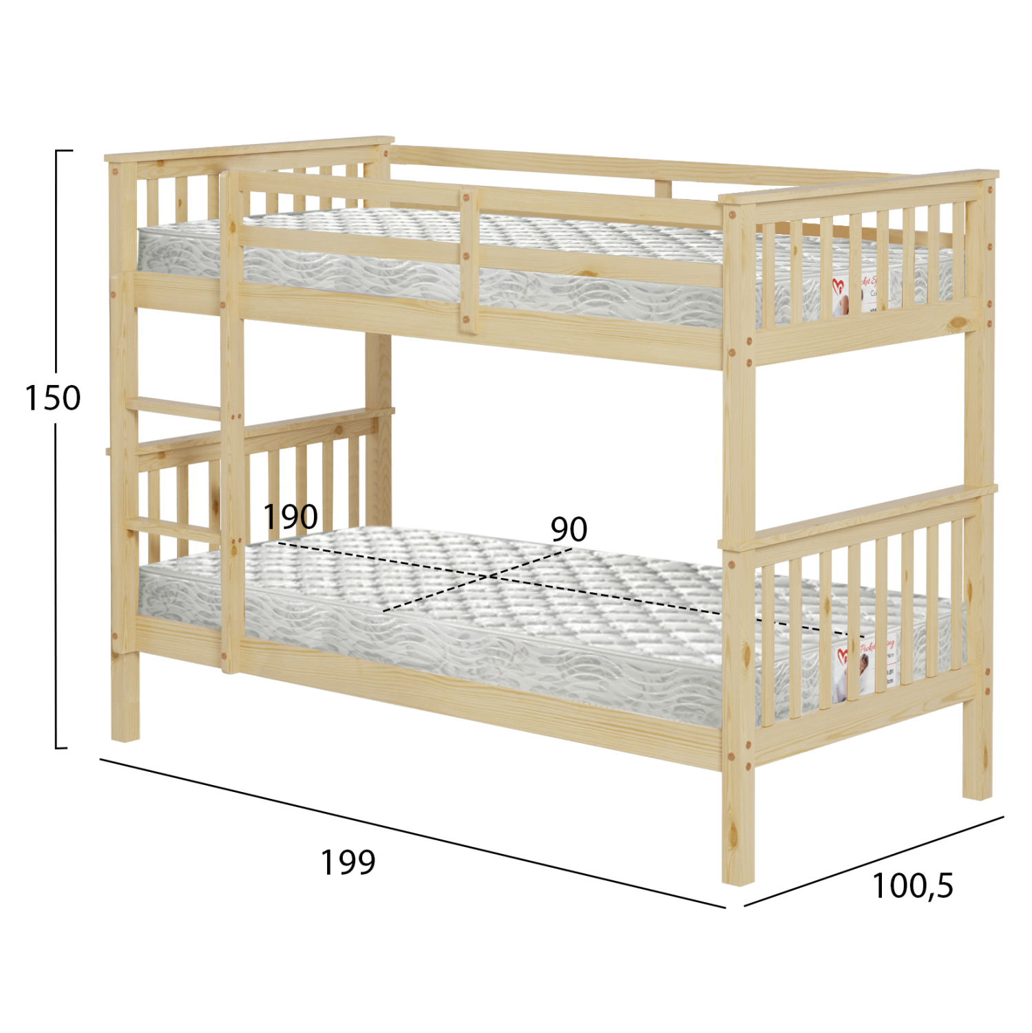 Διαστάσεις στρώματος 90×190 εκ (x2).—- Ύψος στρώματος: 19 εκ.