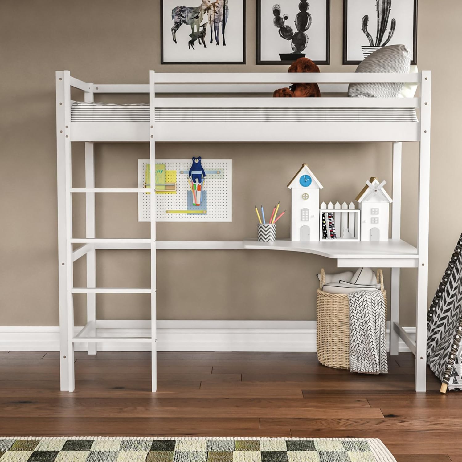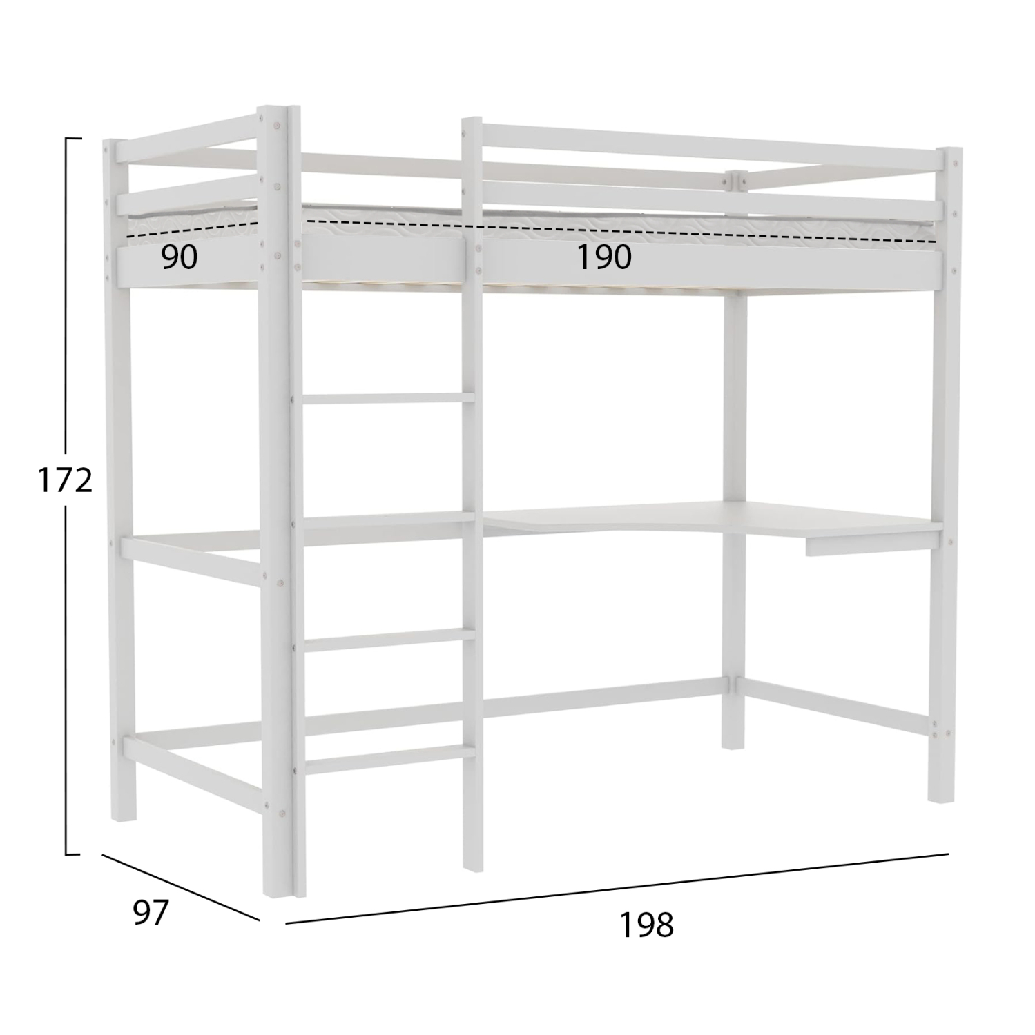 Η παιδική κουκέτα AKRON σε διάσταση για στρώμα 90×190εκ, είναι κατασκευασμένη από ξύλο πεύκου σε ΛΕΥΚΟ χρώμα. Η κουκέτα διαθέτει περιμετρικά κάγκελα και σκάλα πρόσβασης στο επάνω κρεβάτι και στο κάτω μέρος υπάρχει γωνιακό γραφείο, ενώ το στρώμα τοποθετείται σε τάβλες από κόντρα-πλακέ ξυλεία.