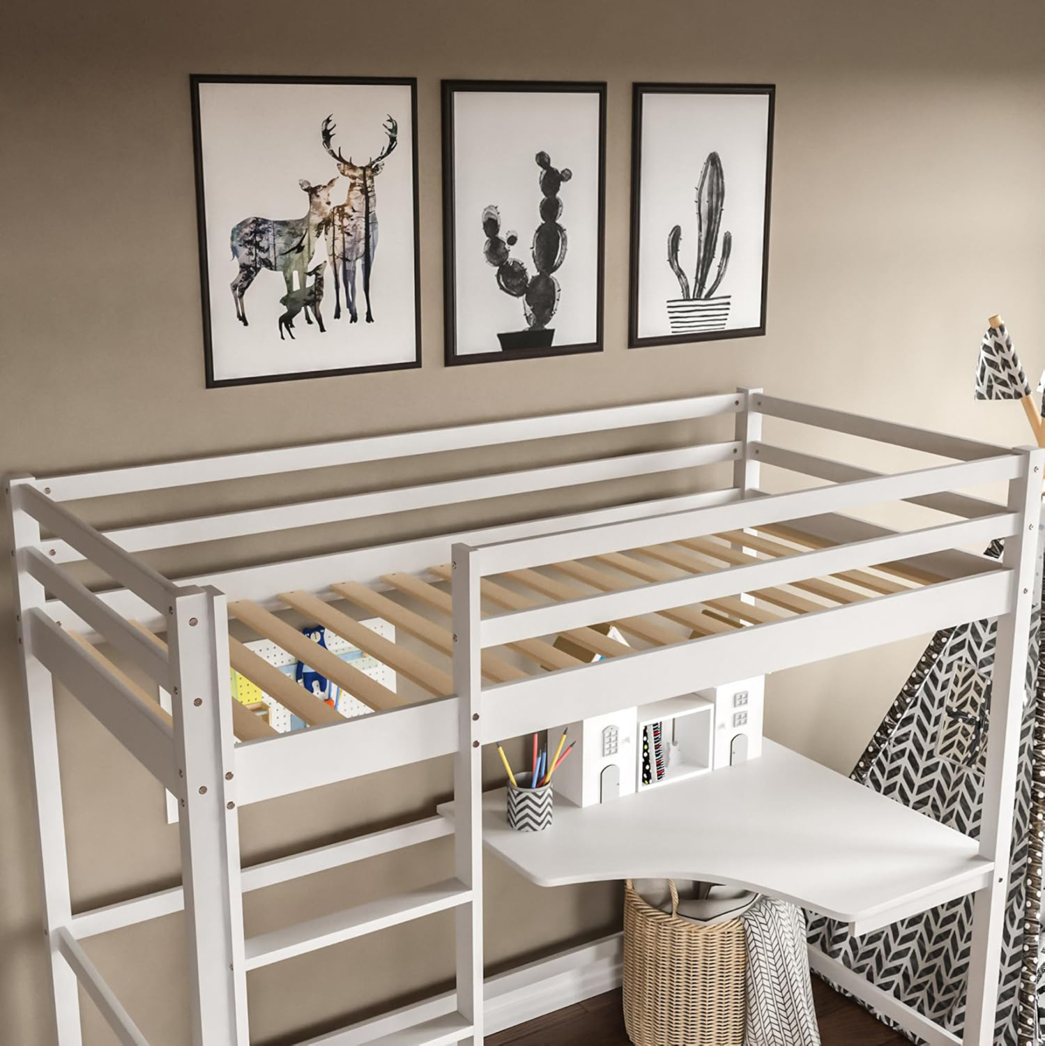 ΚΟΥΚΕΤΑ ΠΑΙΔΙΚΗ ΜΕ ΓΡΑΦΕΙΟ AKRON HM21311.01 ΞΥΛΟ ΠΕΥΚΟΥ ΛΕΥΚΟ–ME ΣΤΡΩΜΑ 90×190εκ