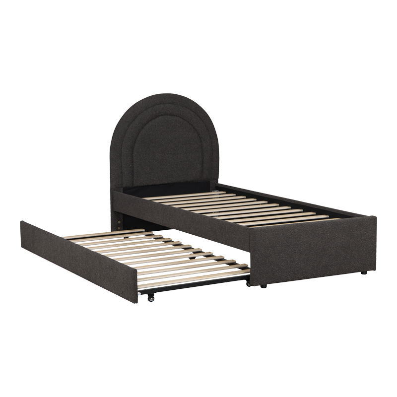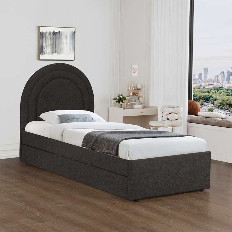 Κρεβάτι Arcuate μπουκλέ υφασμα ανθρακί με συρόμενο 90×200εκ