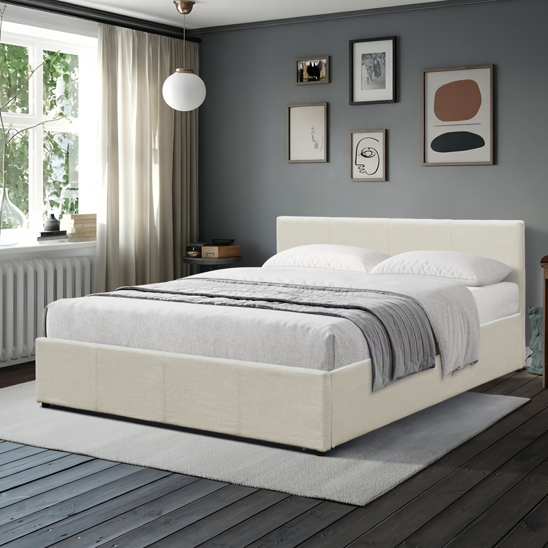 Κρεβάτι Dellia με αποθηκευτικό χώρο ύφασμα κρεμ 150×200εκ