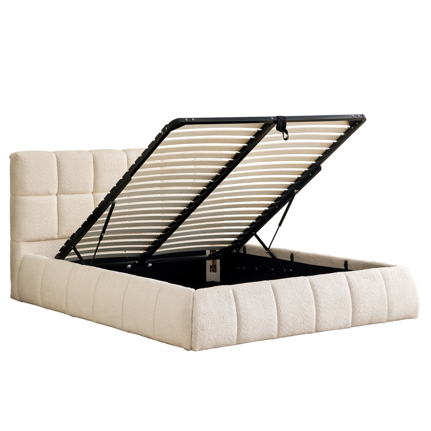 -Ο μηχανισμός του αποθηκευτικού χώρου είναι μεταλλικός και ανασηκώνεται με ανάρτηση (gas-lifts). Πάνω σε αυτό το μεταλλικό πλαίσιο τοποθετούνται και οι τάβλες του στρώματος.