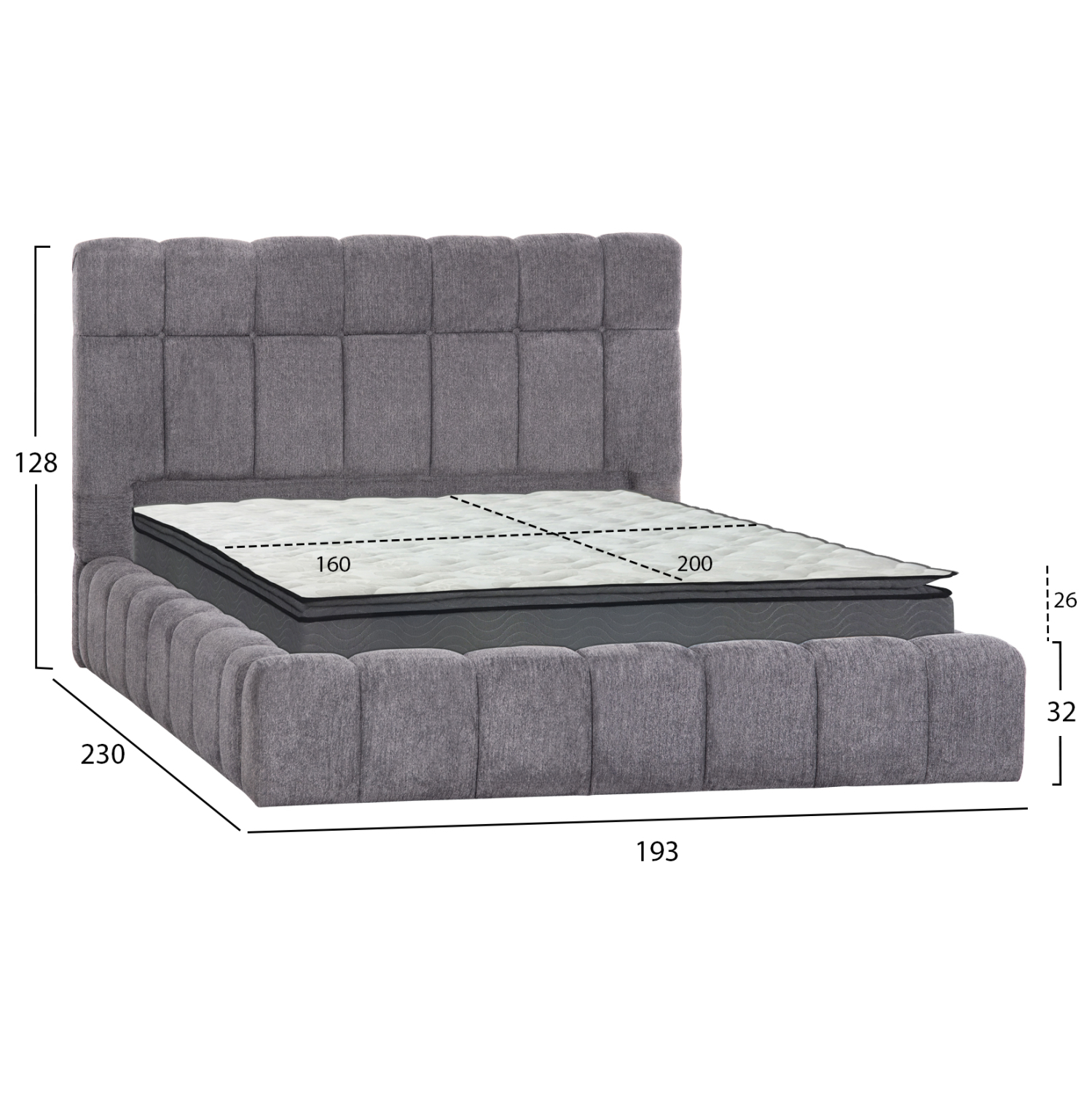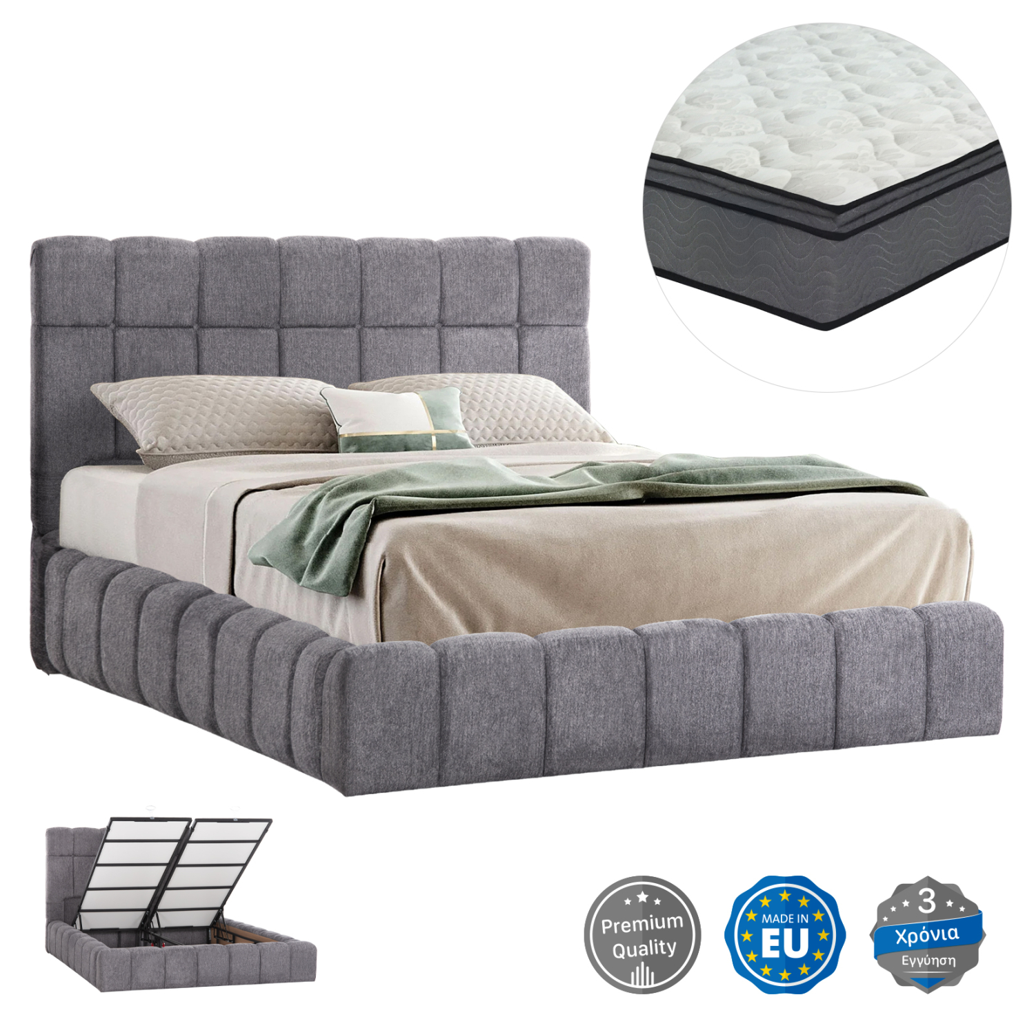 ΚΡΕΒΑΤΙ ΔΙΠΛΟ ΜΕ ΣΤΡΩΜΑ & ΑΠΟΘ.ΧΩΡΟ RAMON HM21168 ΓΚΡΙ ΜΠΟΥΚΛΕ–ΓΙΑ 160×200εκ