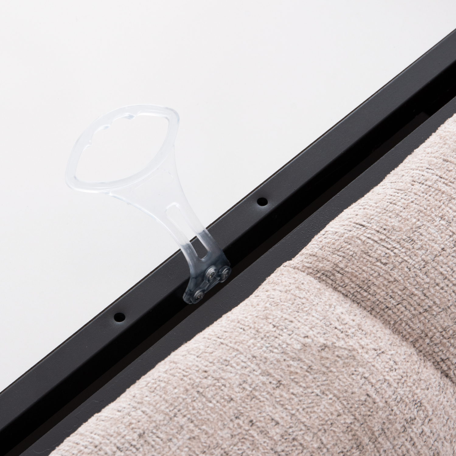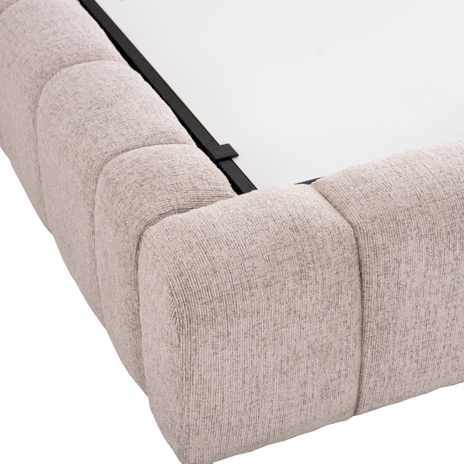 Το REMO είναι ένα υπέρδιπλο κρεβάτι που θα αγαπήσετε με την πρώτη ματιά! Το κεφαλάρι είναι ψηλό με τεχνοτροπία καπιτονέ με κάθετες ραφές από «ζεστό» και εντυπωσιακό ύφασμα μπουκλέ σε ΜΠΕΖ χρώμα. Τα πλαϊνά του κρεβατιού αλλά και το ποδαρικό είναι ίδιας αισθητικής με το κεφαλάρι και «αγκαλιάζουν» το στρώμα! Το στρώμα τοποθετείται σε δύο υποστρώματα/μοριοσανίδες, οι οποίες μάλιστα ανασηκώνονται με μεταλλικό μηχανισμό ασφαλείας με 4 αμορτισέρ και διαφανείς πλαστικές λαβές προσφέροντας έναν μεγάλο αποθηκευτικό χώρο.